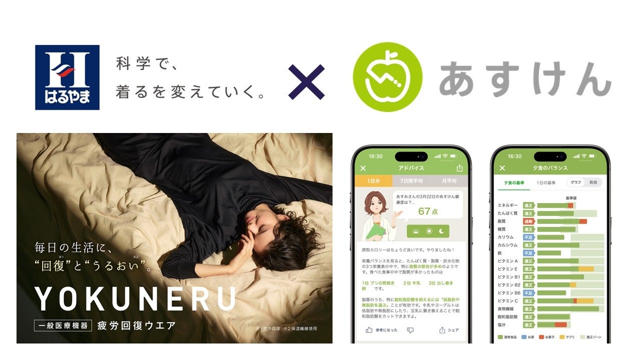 こうした結果をうけて、リカバリーウェアを発売している「はるやま」と食生活の改善やダイエットをサポートするAI食事管理アプリ『あすけん』が、新しい環境で生活を始める人たちの生活改善、習慣の獲得をサポートするために、2026年3月にコラボレーション施策を共同で実施します。