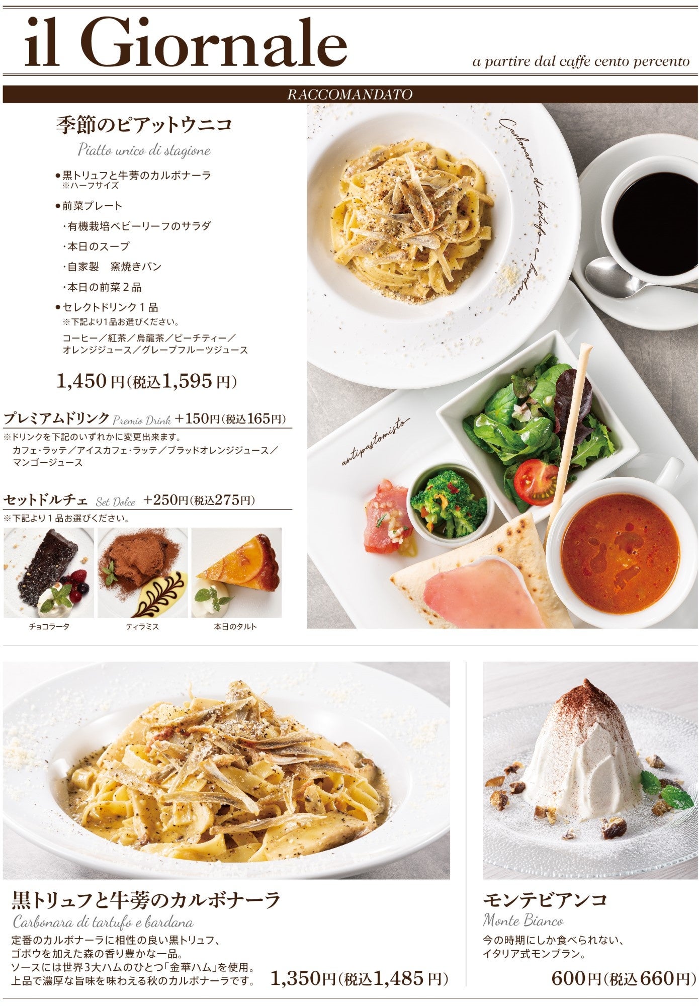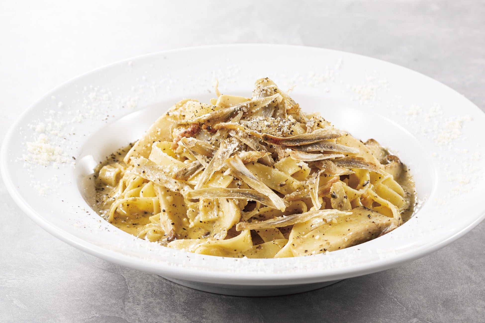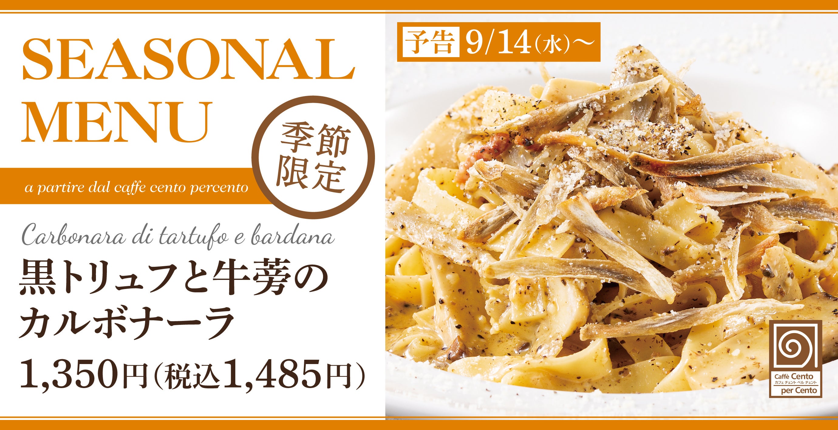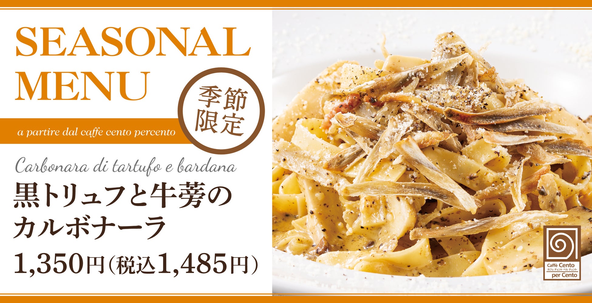 【定番を秋の装いで】北海道産の牛蒡と金華ハムの旨味「黒トリュフと牛蒡のカルボナーラ」がチェントペルチェントに期間限定で新登場!