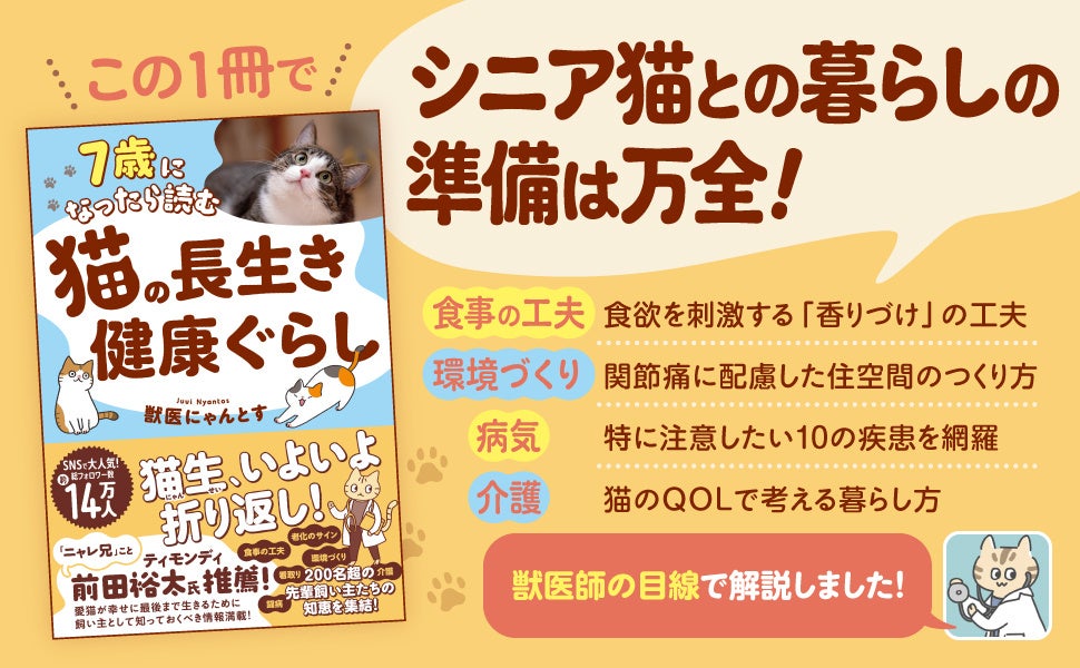 愛猫の健康が気になったら?シニア猫の飼い主必読の1冊!『7歳になったら読む 猫の長生き健康ぐらし』発売(10/19)。