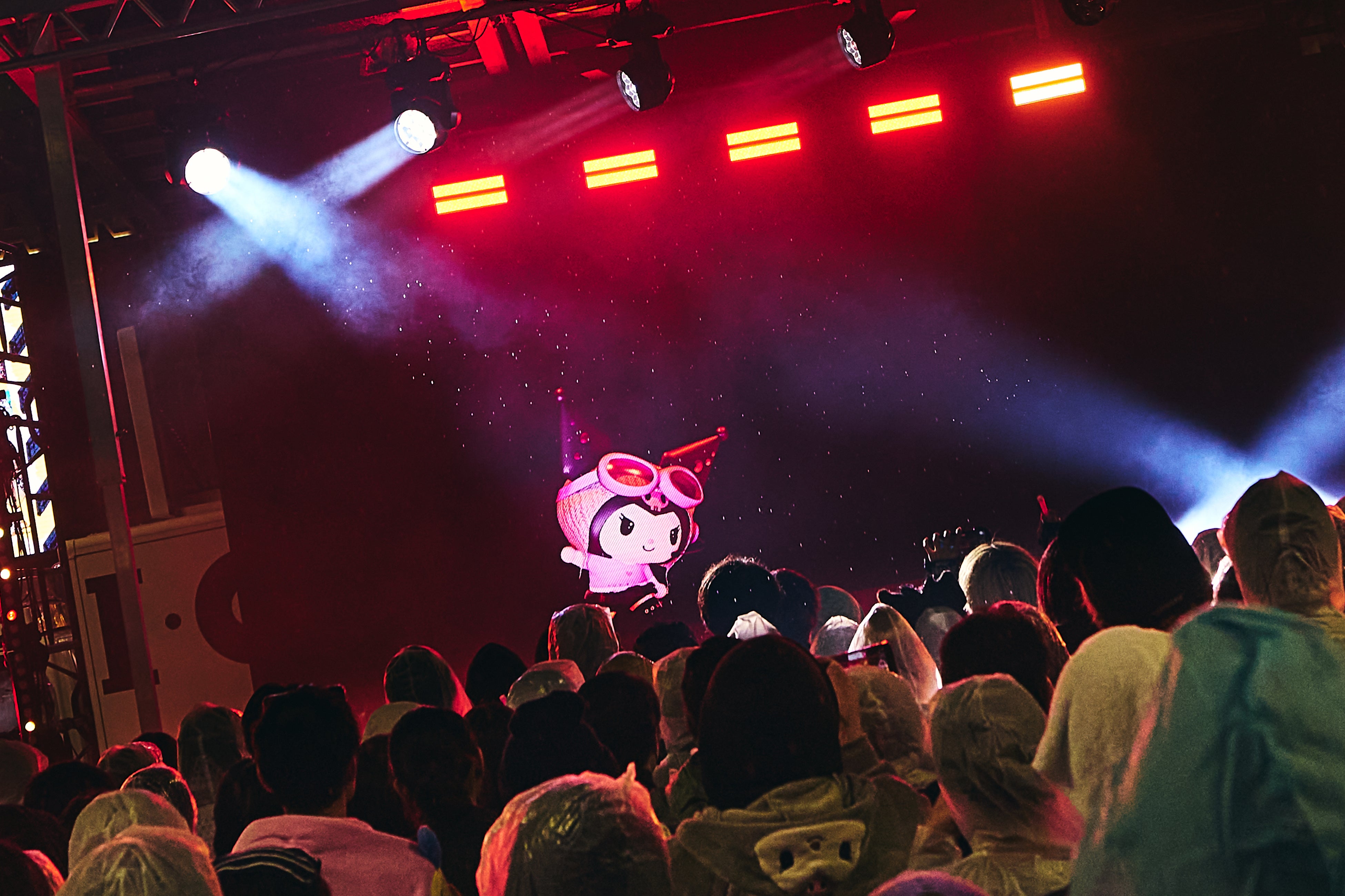 ステージに3DルックのKUROMIが登場し、1st EP「KUROMI IN MY HEAD」全収録曲をライブ初披露しました。会場には、ファンであるKUROMIES(クロミーズ) 約700人が駆け付け、熱気とサイリウムの光に包み込まれました。