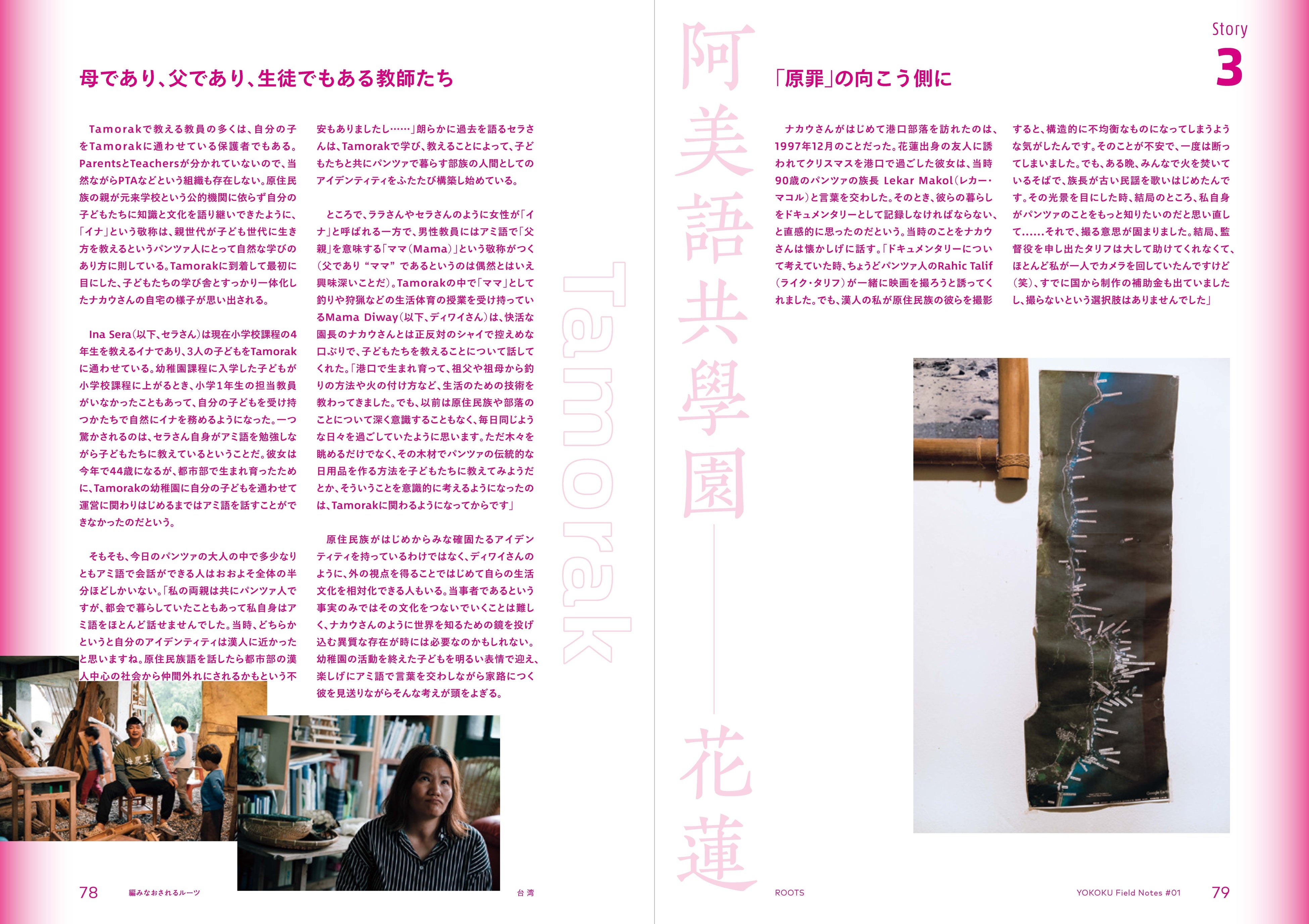 初作となる日本・鹿児島でのフィールドリサーチに端を発しその流れを継ぐ〈YOKOKU Field Notes〉第1号となる本書では、外来文化に翻弄されてきた複雑な歴史を背負う台湾をフィールドに、人々が共に生きるための拠り所となる「ルーツ」を問いの切り口として、5つの事例を巡ります。