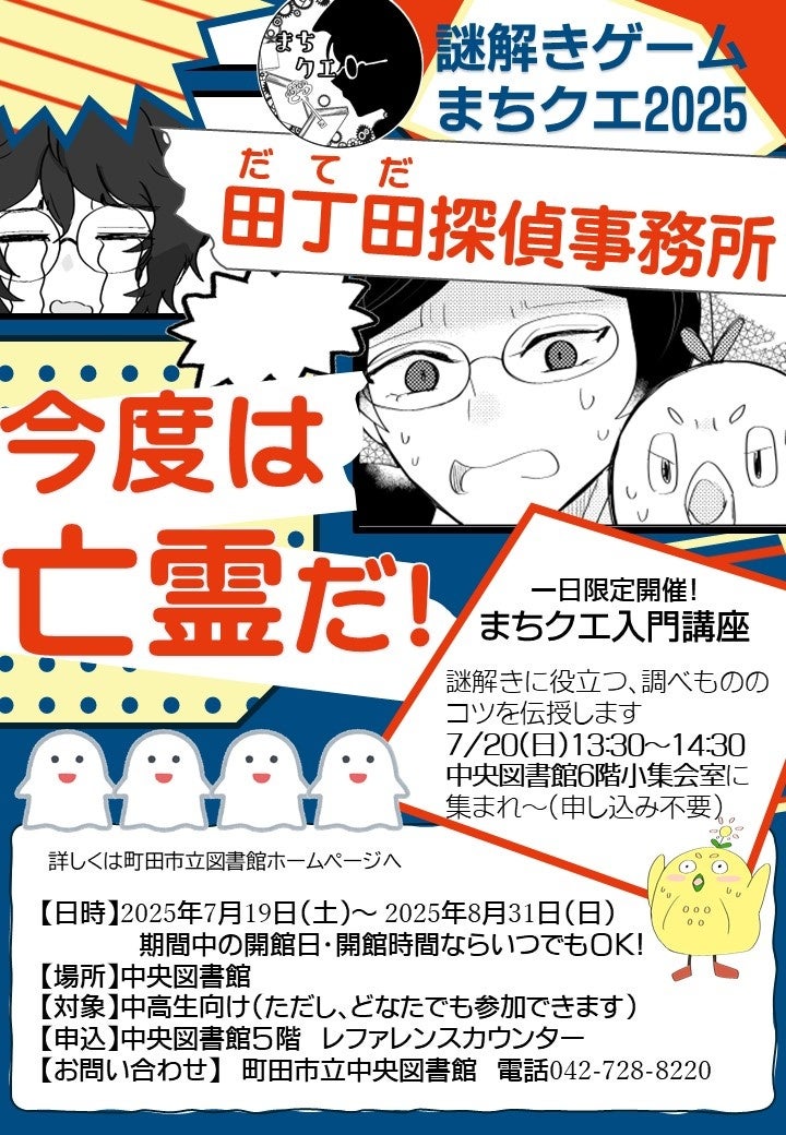 【東京都町田市】「図書館で謎解きゲーム~まちクエ2025~田丁田探偵事務所 今度は亡霊だ!」を開催します