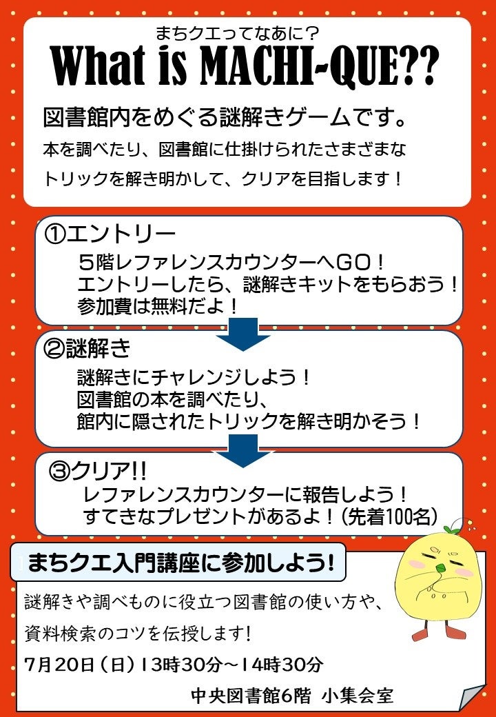町田市立図書館では、中学・高校生世代に本を借りるだけではない図書館の魅力を知ってもらうことを目的に、毎年「まちクエ」と題したイベントを行っています。