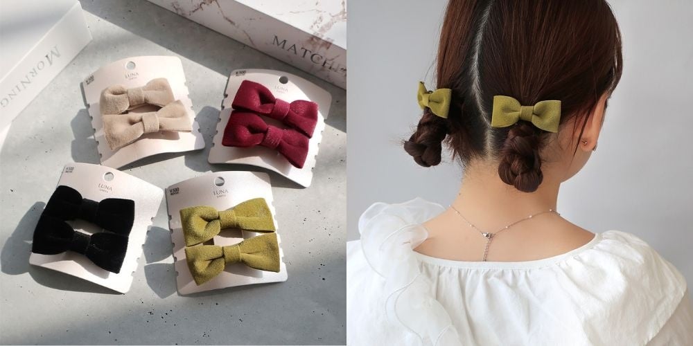 秋冬ファッションに合わせやすい、生地デザインのリボンアクセサリー。