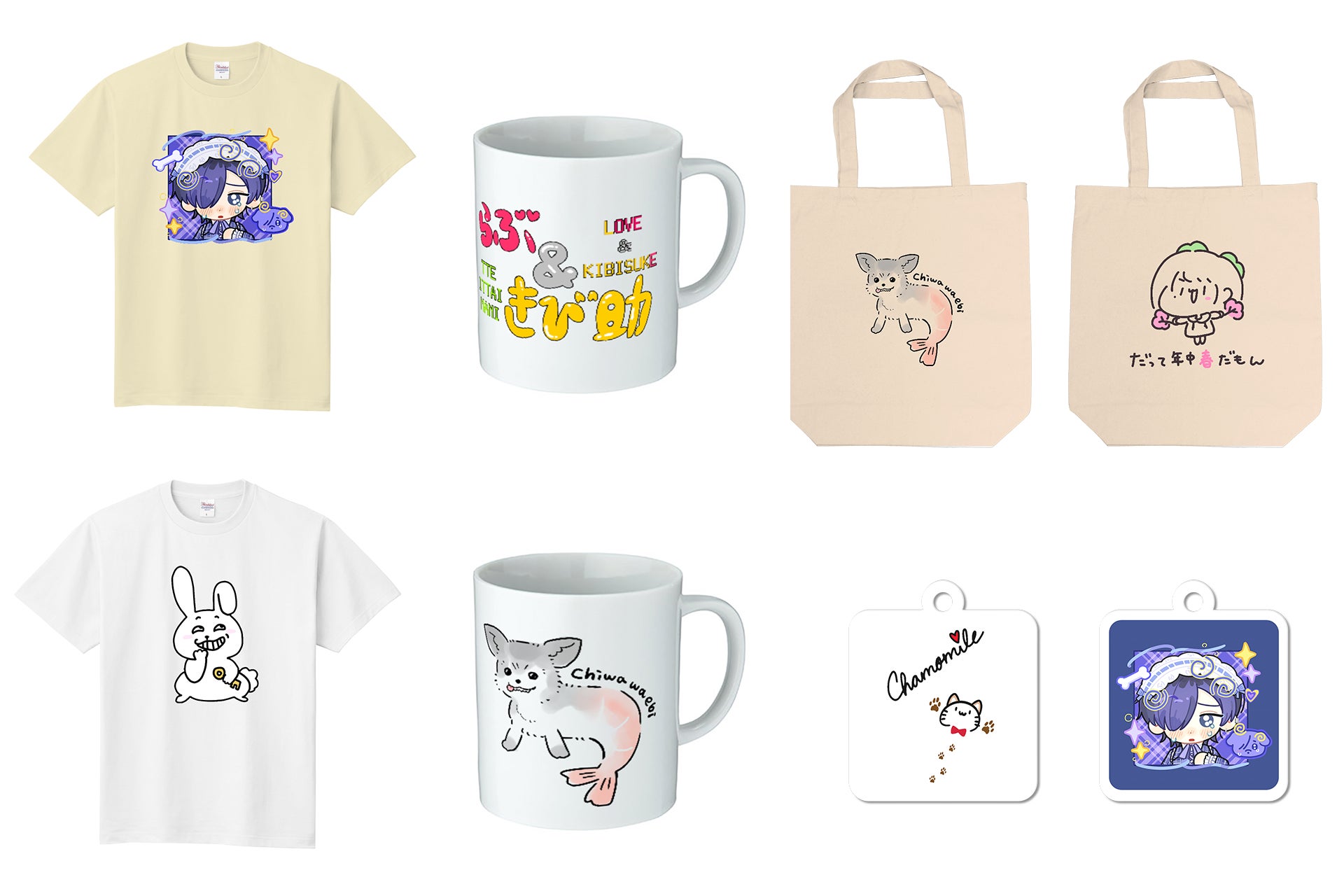 取り扱いアイテム:Tシャツ、スマホケース、文房具、のぼり旗他(毎月2アイテムずつ追加!)