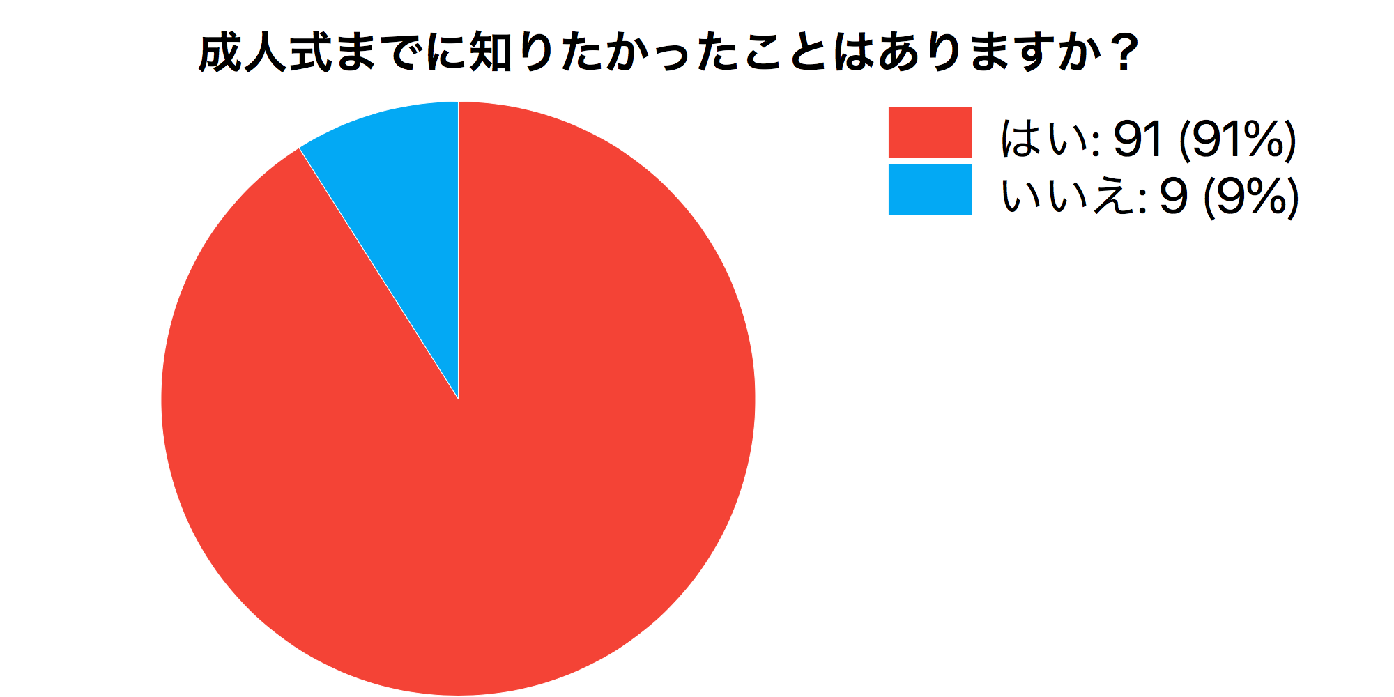 成人式に参加した方のうち、知っておきたかったことがある方が91%と大多数を占めていることが明らかになりました。