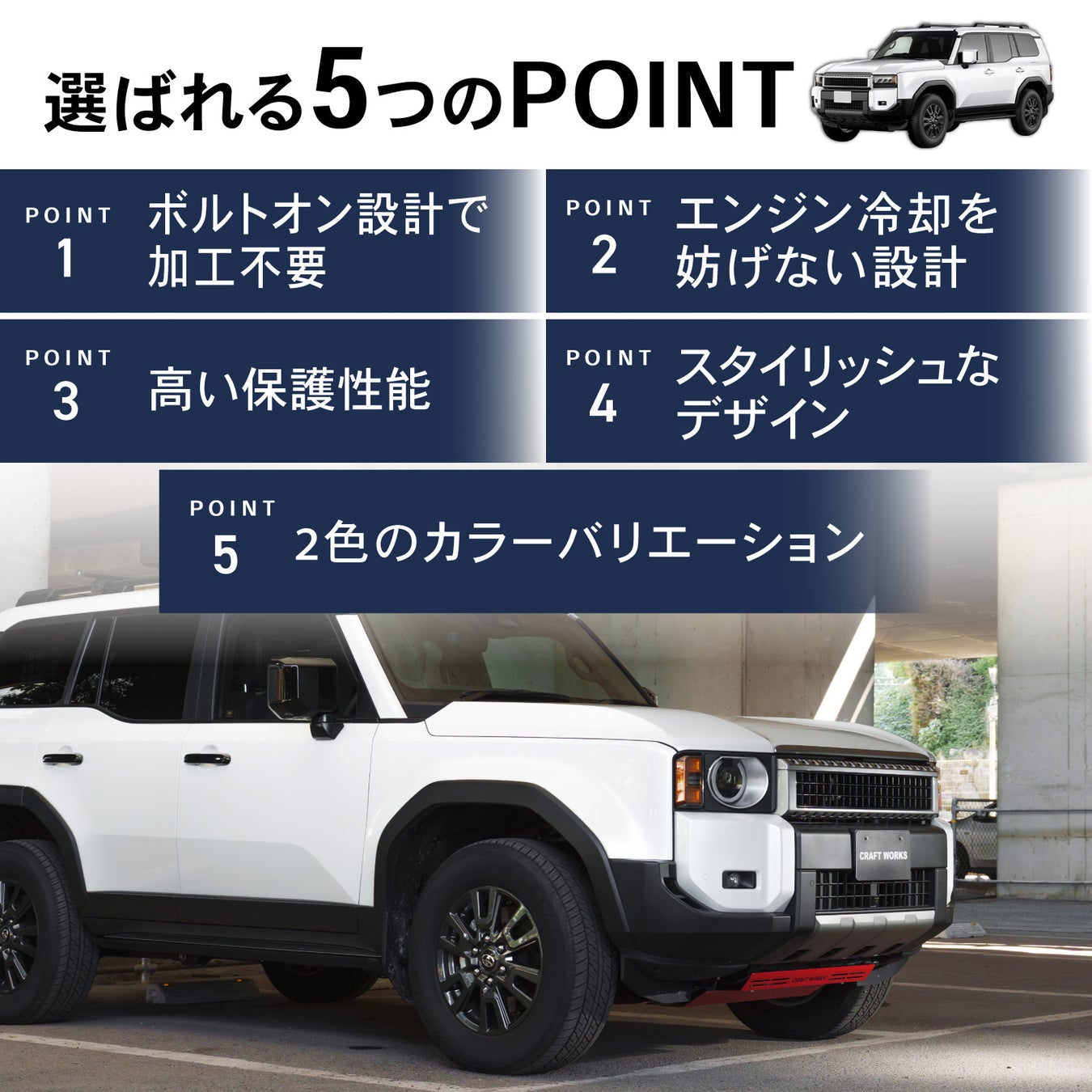 【新商品】ランクル250専用 フロントスキッドプレート。ボディ下部を守る高い保護性能&チラリと見える差し色デザインで、足元から個性を演出。ランクルをより魅力的に仕上げるスキッドプレート登場。