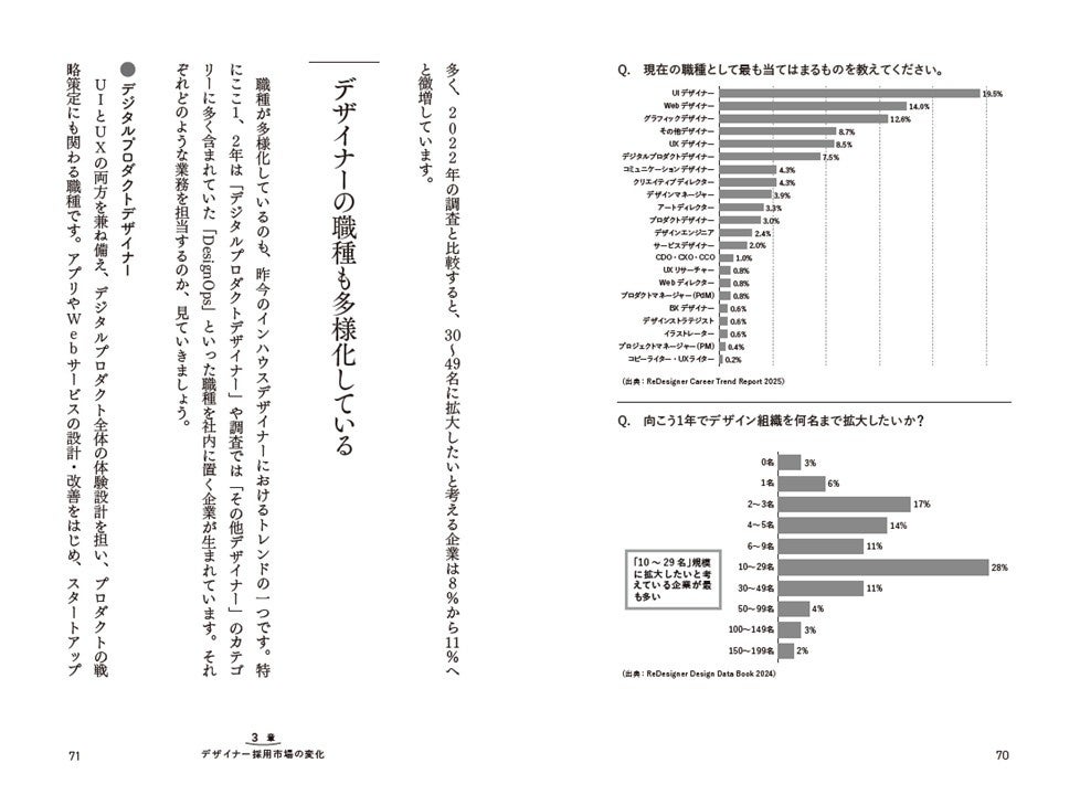 「デザイン組織を拡大したい」と答えた企業が増加/デザイナーの職種も多様化している/年収1000万円を超えるデザイナーも増加/複数のスキルを併せ持つ職種ほど年収も高い/職種別のデザイナーの採用ニーズ――なぜ採用難度は上がっているのか/インハウスデザイナーと社外デザイナー、役割の違いは