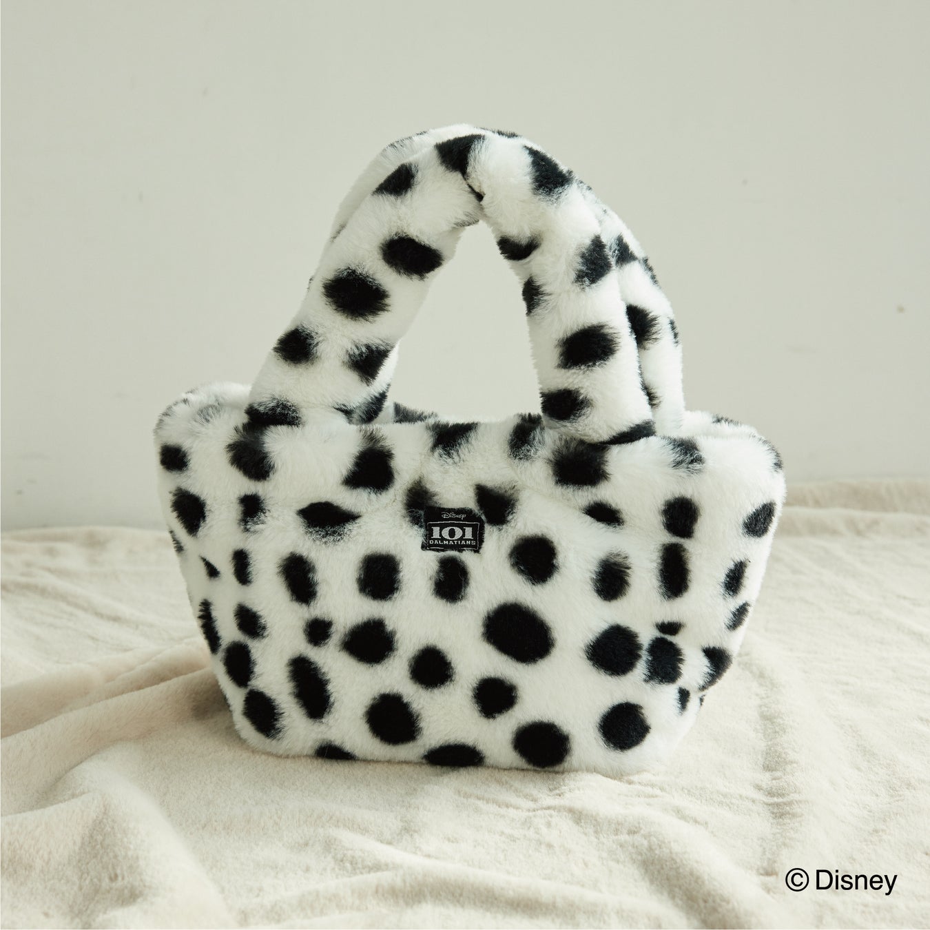 フェイクファー素材にダルメシアン柄をプリントしたミドルサイズのトートバッグ。