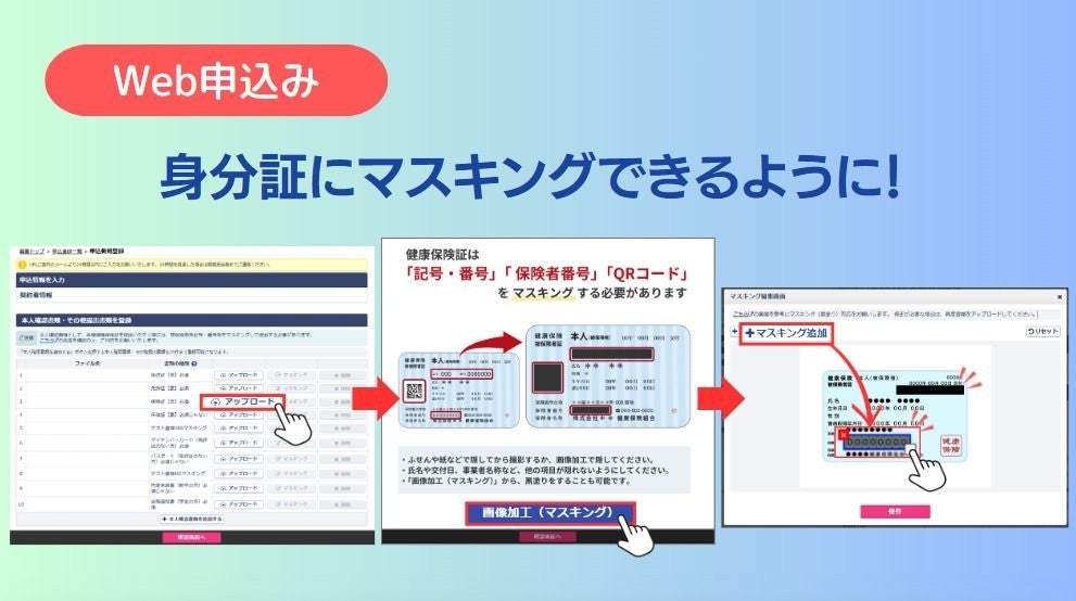 本人確認書類の画像をシステム上で直接マスキング加工できます。