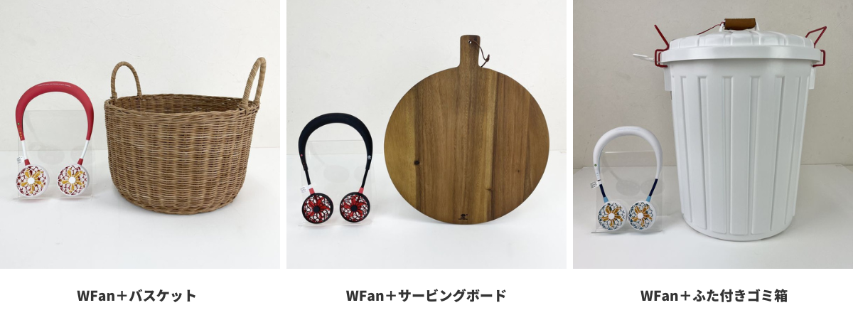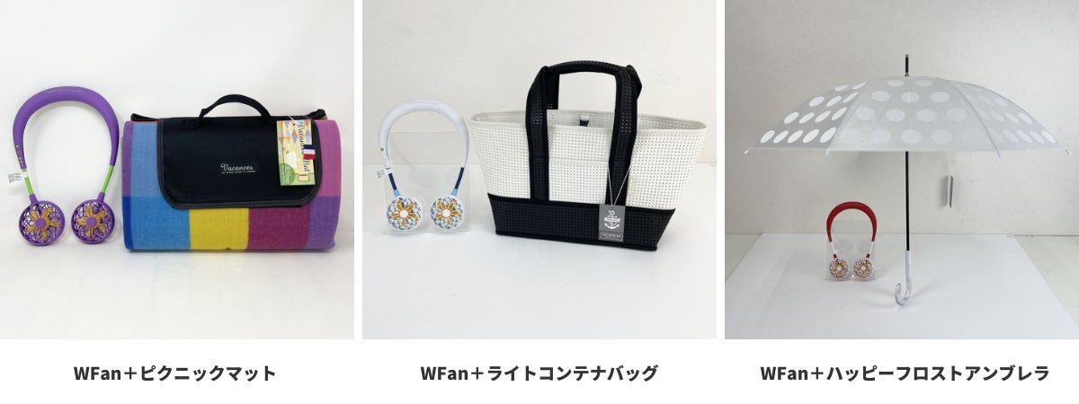 両手が自由になる首掛け扇風機WFan(ダブルファン)と一緒に使って欲しいアイテムを様々なシーンに合わせてご用意しました。