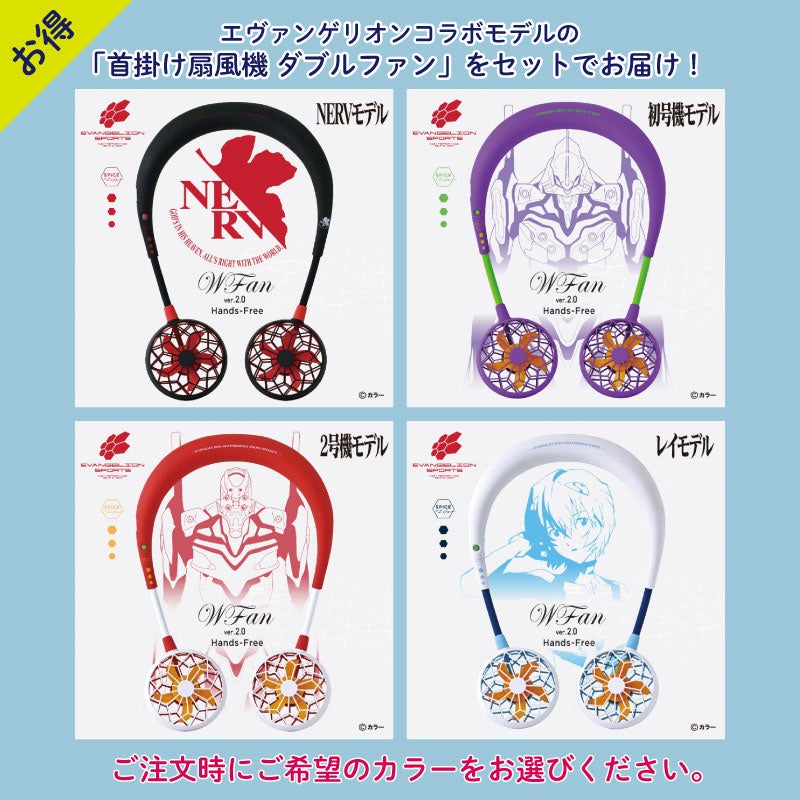 各商品とセットのWFanは、人気のエヴァンゲリオンモデルよりお好みのカラーをお選びいただけます!