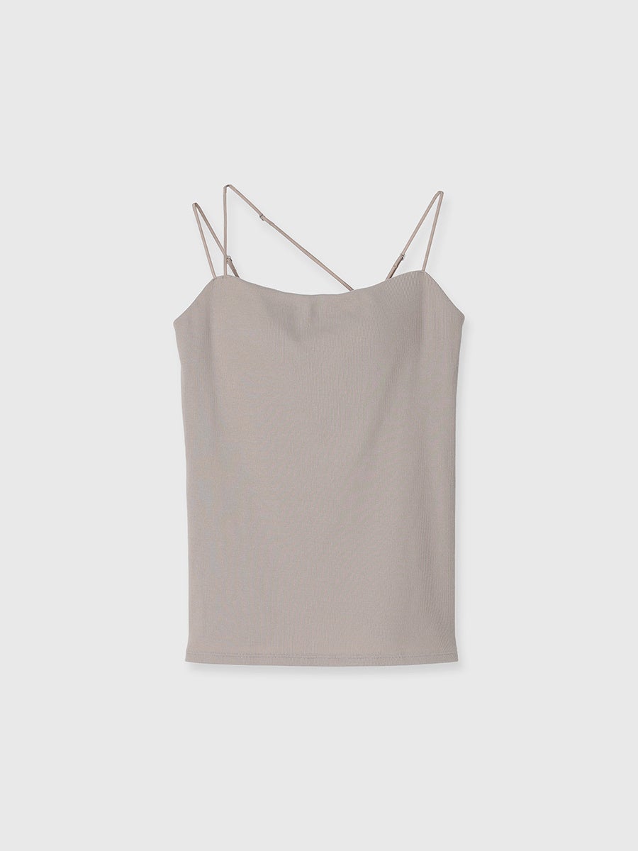 「OUR WACOAL」で人気の2wayでストラップのつけ方を変えられるキャミソールに「ánuans」らしいニュアンスカラーを掛け合わせました。背中上辺には「ánuans」のロゴ入りゴールドプレートをあしらうことで、後ろ姿も上品な印象に仕上げています。