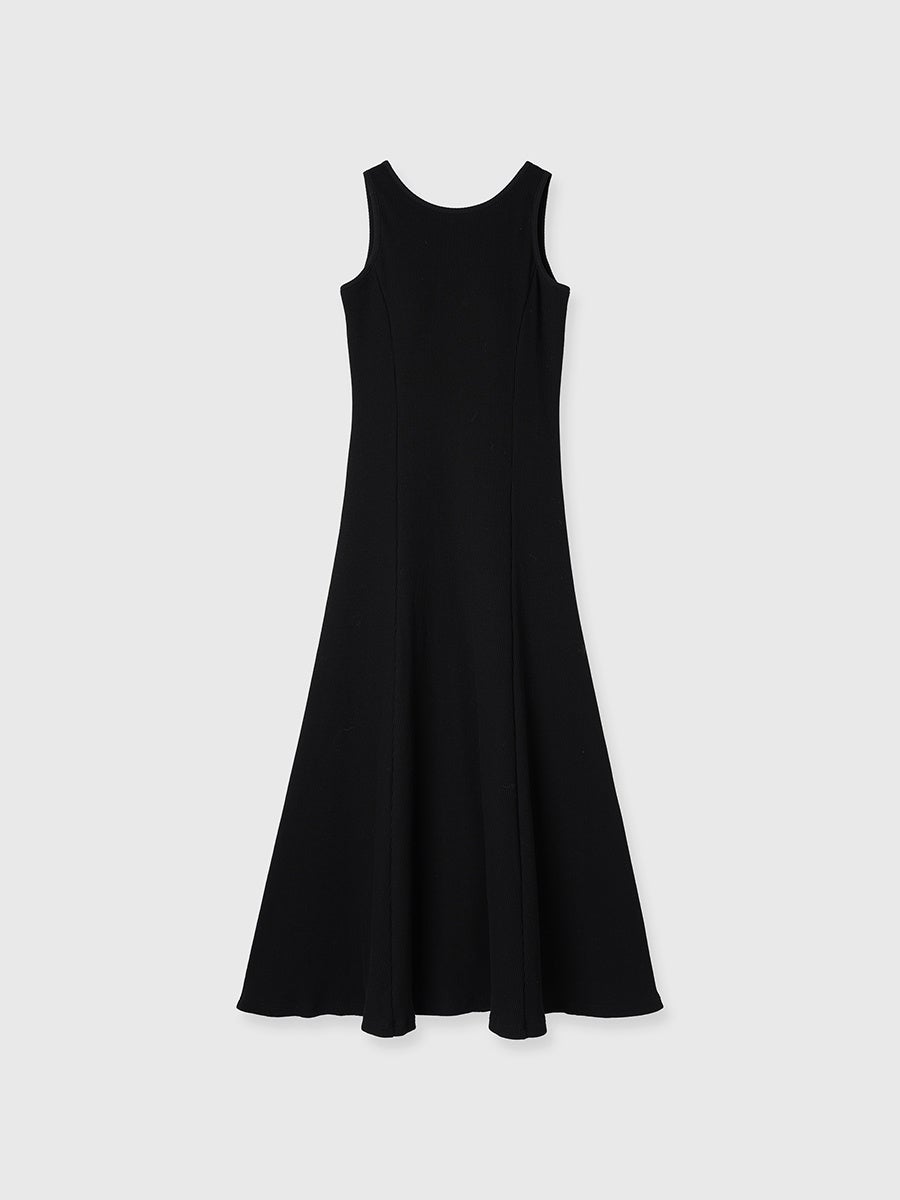 適度な厚みとリブ感のある生地をたっぷり使ったマーメイドシルエットは、シンプルながらカジュアルになり過ぎず、上品な印象を与えます。