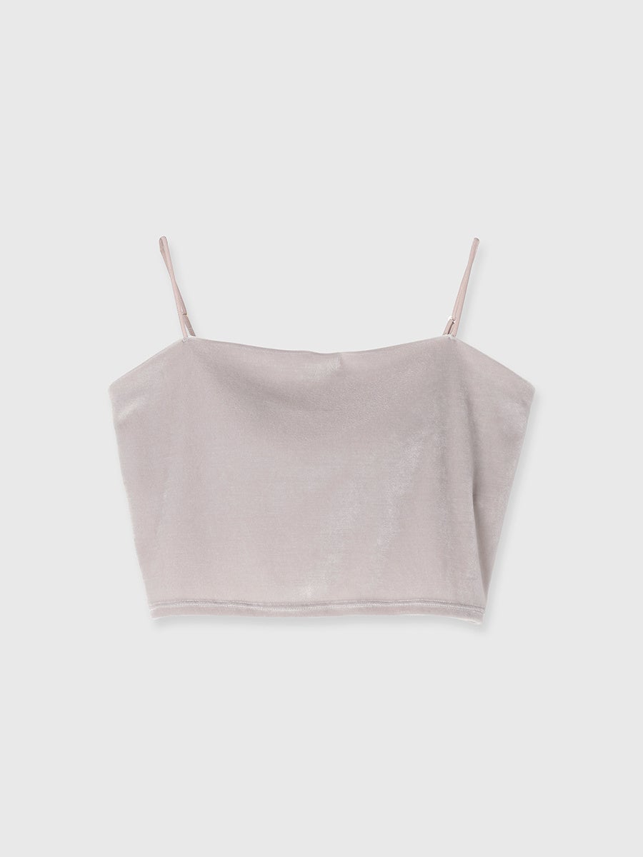 トレンドのベロアを使ったショート丈のキャミソール。トリアセテート混のベロア生地を使い、やわらかくなめらかな肌ざわりと、上品な光沢感を楽しめます。