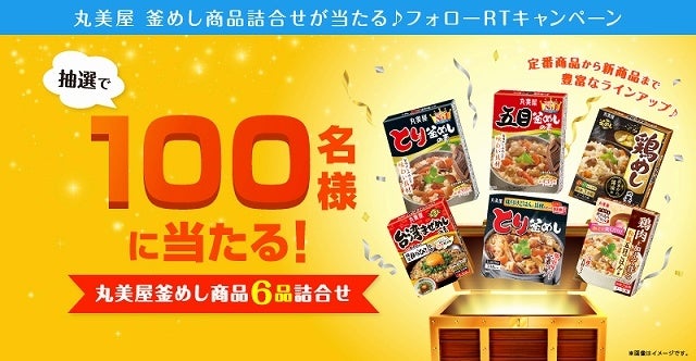 丸美屋 釜めし商品詰合せが当たる♪フォロー&RTキャンペーン実 施 期 間 : 2022年1月17日(月)10:00~2月14日(月)23:59送信分まで有効