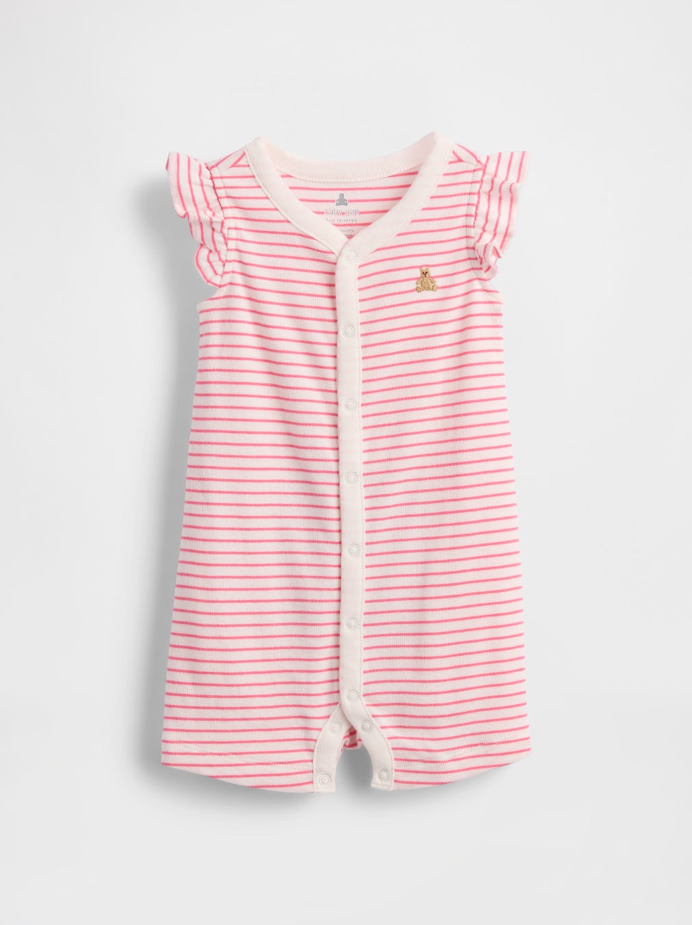 カラフルなピンクストライプのアイテムも、ウィメンズ、ガールズ、トドラーガール、ベビーガールで展開します。ウィメンズはアーカイブから復刻したオーバーシルエットのポプリン ビッグシャツ、ガールズはギャザーやペプラムデザインが特徴のポプリン ぺプラムトップスが並びます。トドラーガールは胸元のラッフルフリルがキュートなポプリン ジャンプスーツ、ベビーガールはお尻にブラナンベアが描かれたブラナンベア ロンパースが登場。ロンパースは、前開きのスナップボタン付きなので首座り前の新生児にもおすすめです。