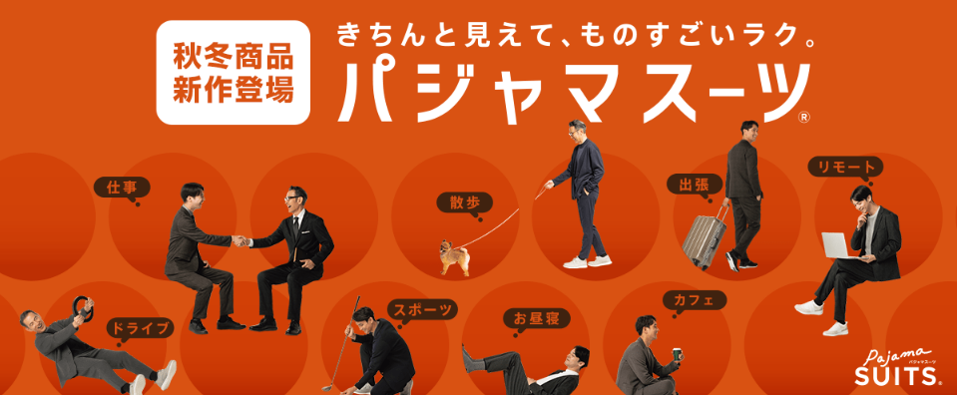 株式会社AOKI(代表取締役社長:森裕隆)は、昨今のスーツ回帰を受けて、今季の秋冬パジャマスーツ®は襟付きのラインナップを前年の約5倍と大幅に増やして展開いたします。今までのパジャマスーツ®より、さらにビジネスで着用しやすい「きちんと感」のある色柄・スタイルで、出社や出張など対面でのビジネスシーンも想定したアイテムをラインナップいたします。本商品は、全国のAOKI店舗およびAOKI公式オンラインショップ(https://www.aoki-style.com/feature/pajamasuit/)にて、順次発売いたします。