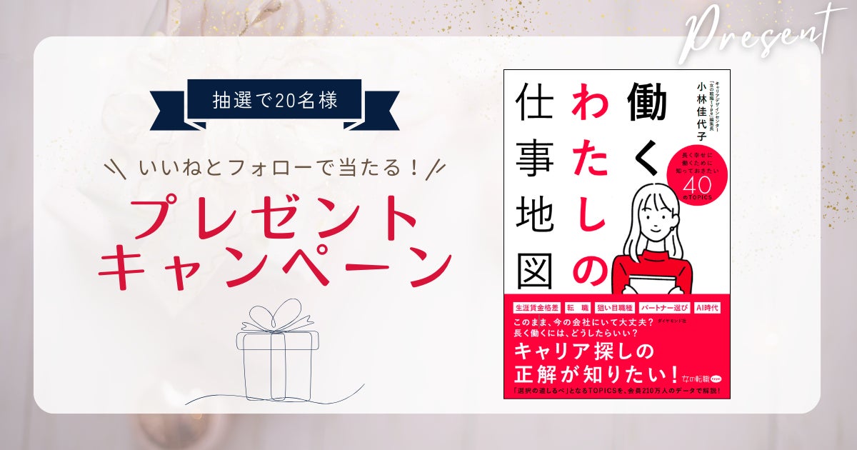 株式会社キャリアデザインセンター(本社:東京都港区、代表取締役社長兼会長:多田 弘實)が運営する、働く女性のためのWebマガジン『Woman type』は、正社員で長く働きたい女性のための転職サイト『女の転職type』の20周年と、初の書籍『働くわたしの仕事地図』(2025年5月14日出版)の刊行を記念し、本書をWoman type読者20名様にプレゼントする企画を開始いたしました。