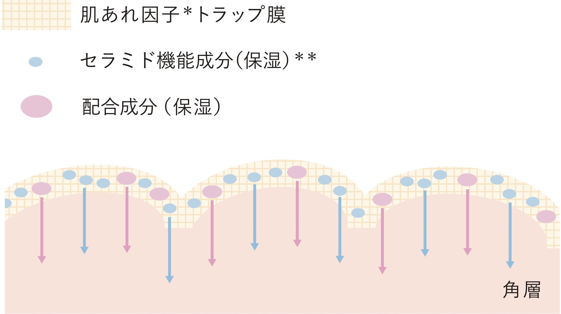 セラミド機能成分※2ナノ粒子化高浸透技術と、肌あれ因子※3を浸透させないトラップ技術の掛け合わせで誕生した、新・機能塗膜※4。