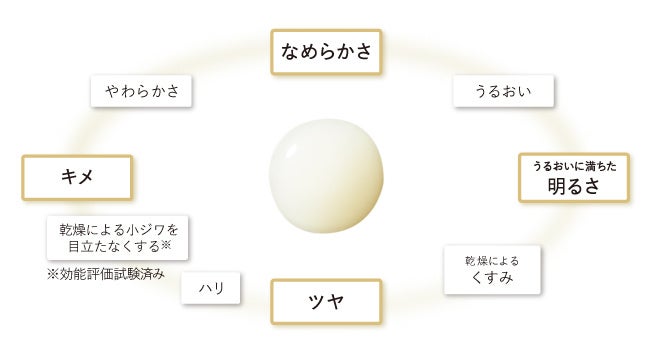 うるおいに導かれたキメ・ツヤ・明るさ・なめらかさ。幸せを感じたときのいきいきとした肌印象へ導く、幸せ肌印象美容液