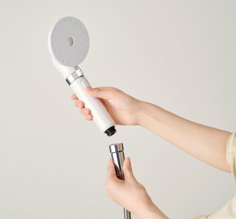 また、新商品のシャワーヘッドは工具不要で取り付けでき、使用中のシャワーヘッドと付け替える(※6)ことで最大約50%の節水(※1)を期待できるほか、止水機能も搭載しており、洗顔や洗髪など目が開けられない時も蛇口をひねらずに手元で水を止められます。