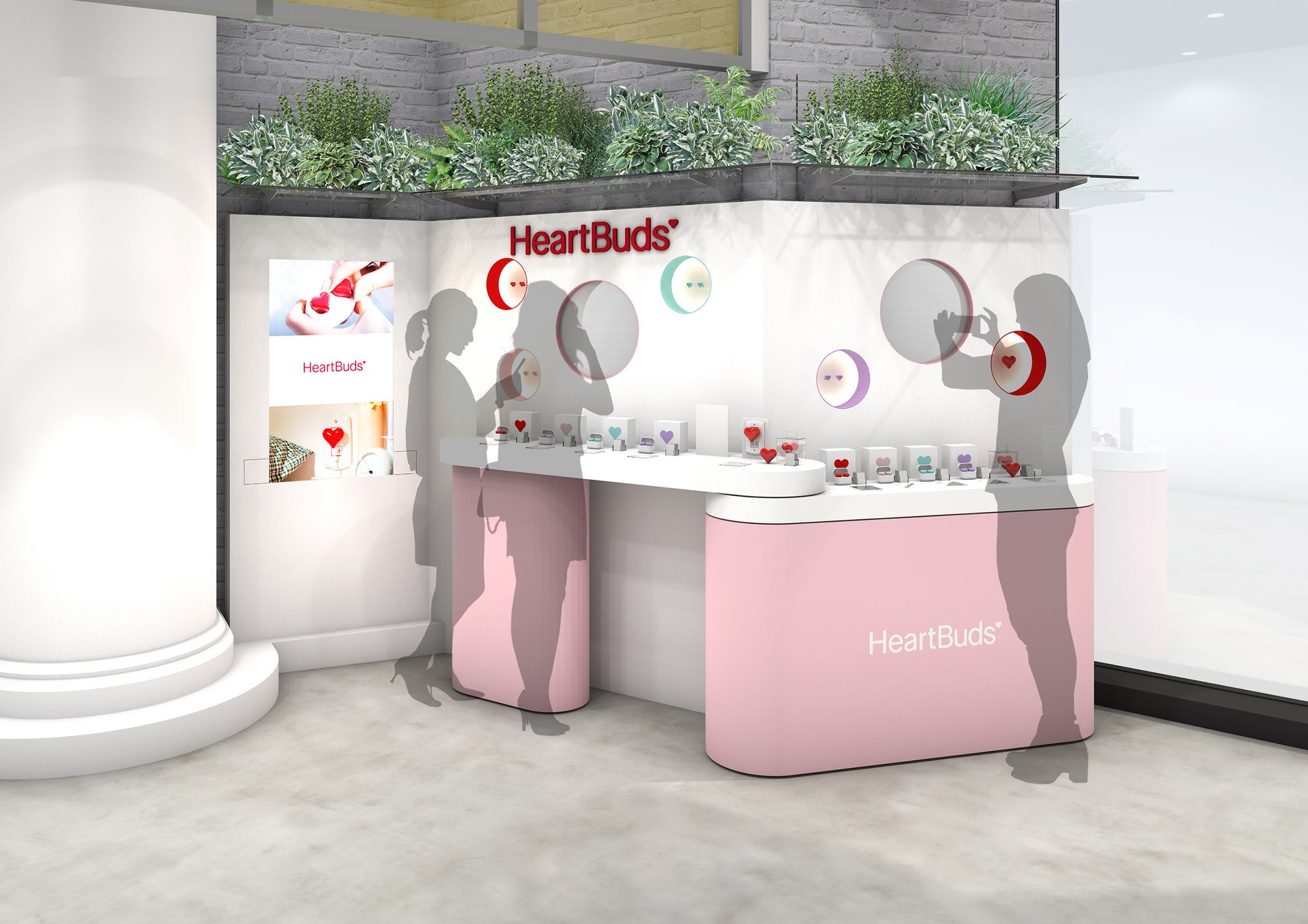 The SHEL’TTER TOKYO 東急プラザ表参道原宿店は、バロックジャパンリミテッドが展開するセレクトショップ「SHEL’TTER(シェルター)」の旗艦店です。「HeartBuds(Charger)」の発売に合わせて、2024年2月9日(金)から3月1日(金)まで、1階に期間限定でPOPUPストアをオープンします。POPUPストアでは、「HeartBuds」と「HeartBuds(Charger)」を実際に手に取っていただけるスペースを用意。また、同期間に、店舗の壁面の大型ビジョンに「HeartBuds」シリーズのプロモーション動画を放映します。