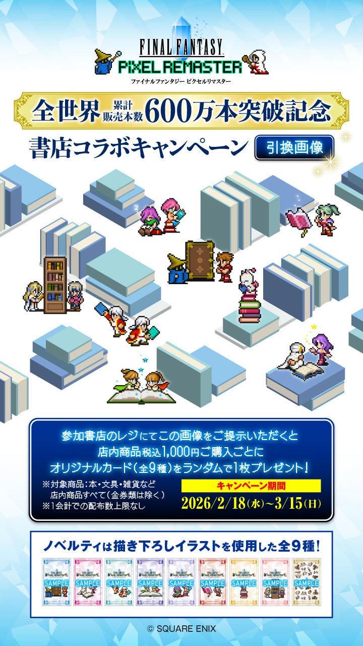 累計販売本数600万本突破記念!RPG「ファイナルファンタジー ピクセルリマスター」シリーズとの書店コラボキャンペーンを2月18日より全国609書店で開催