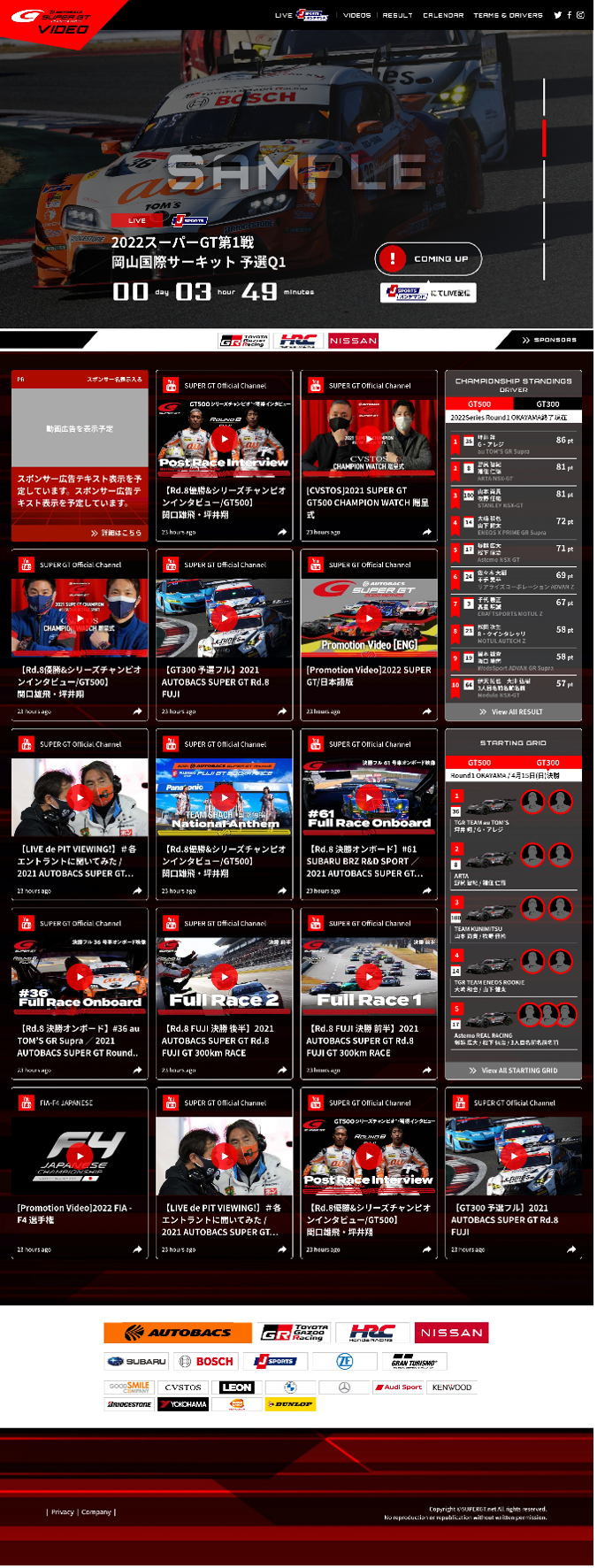 株式会社三栄が制作・運営サポートする動画ポータルサイト「SUPER GT VIDEO Online」が4月4日サービス開始!