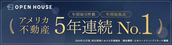 株式会社オープンハウスグループ(本社 東京都千代田区、代表取締役社長 荒井正昭、以下「当社」)のグループ子会社である株式会社オープンハウス(以下「オープンハウス」)は、アメリカ不動産事業において、「年間取引数・取扱高No.1」の評価を5年連続で獲得いたしました。