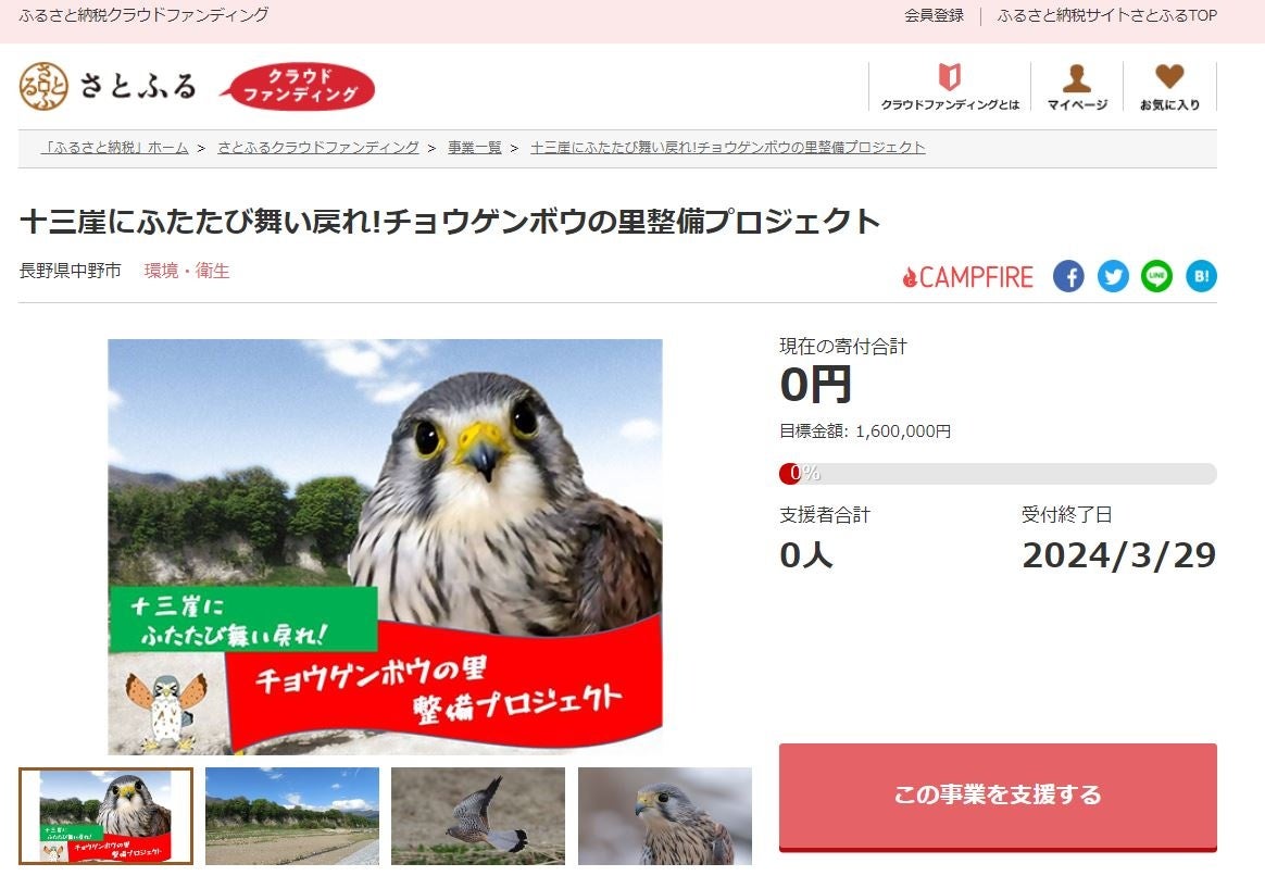 長野県中野市とさとふる、チョウゲンボウの集団営巣を再生するため寄付受け付けを開始