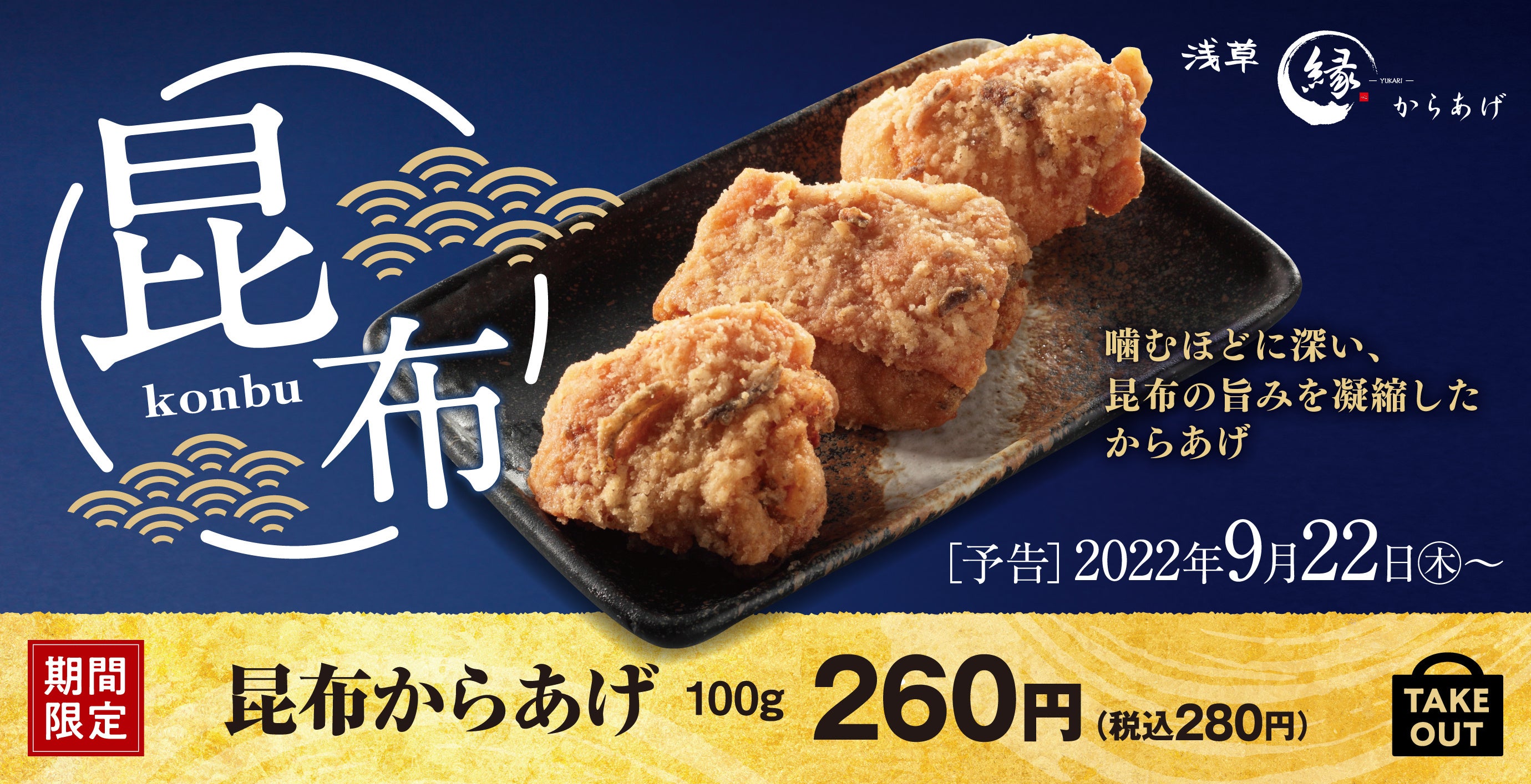 【噛むほどに深い昆布の旨味】秋の新作「昆布からあげ」からあげ縁に登場!