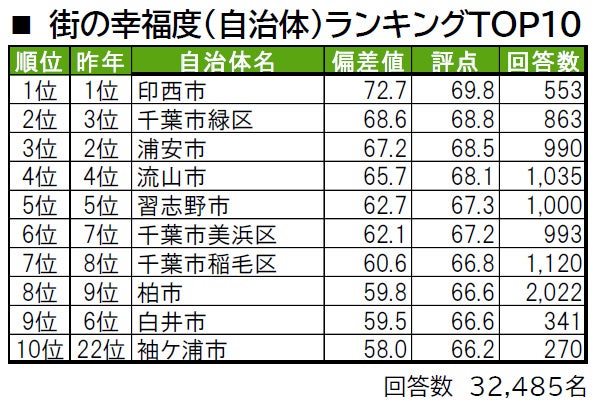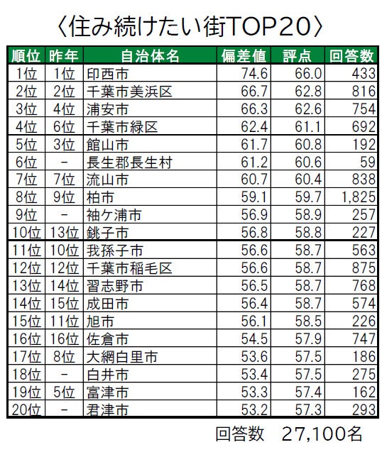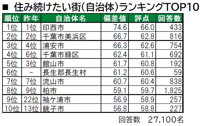 いい部屋ネット「街の幸福度 & 住み続けたい街ランキング2022<千葉県版>」発表