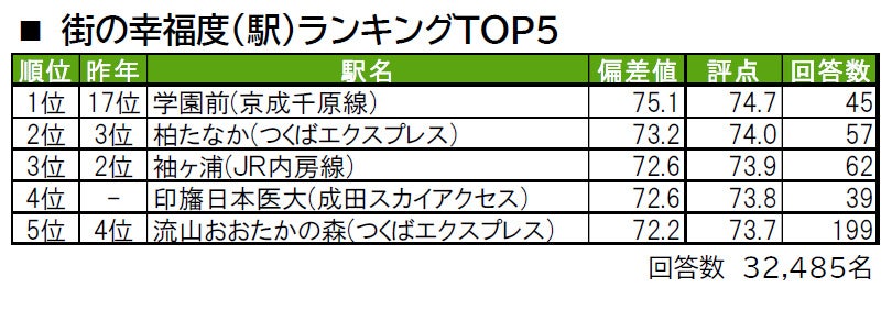 ■街の幸福度(駅)トップは、学園前(京成千原線)