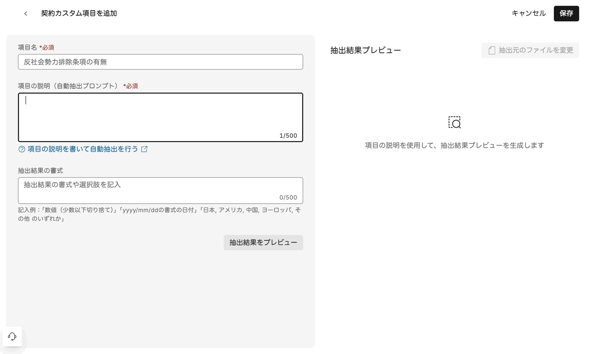 契約情報を管理する上で、企業ごとに独自の契約書管理項目を設定することが多いことから「LegalOn」の「コントラクトマネジメント」では、提供初期より「契約カスタム項目」機能を搭載しています。今回、この「契約カスタム項目」において、指定した抽出ルール(プロンプト)に従って、AIが契約書本文から契約書台帳に必要な情報を自動で抽出する機能が加わりました。