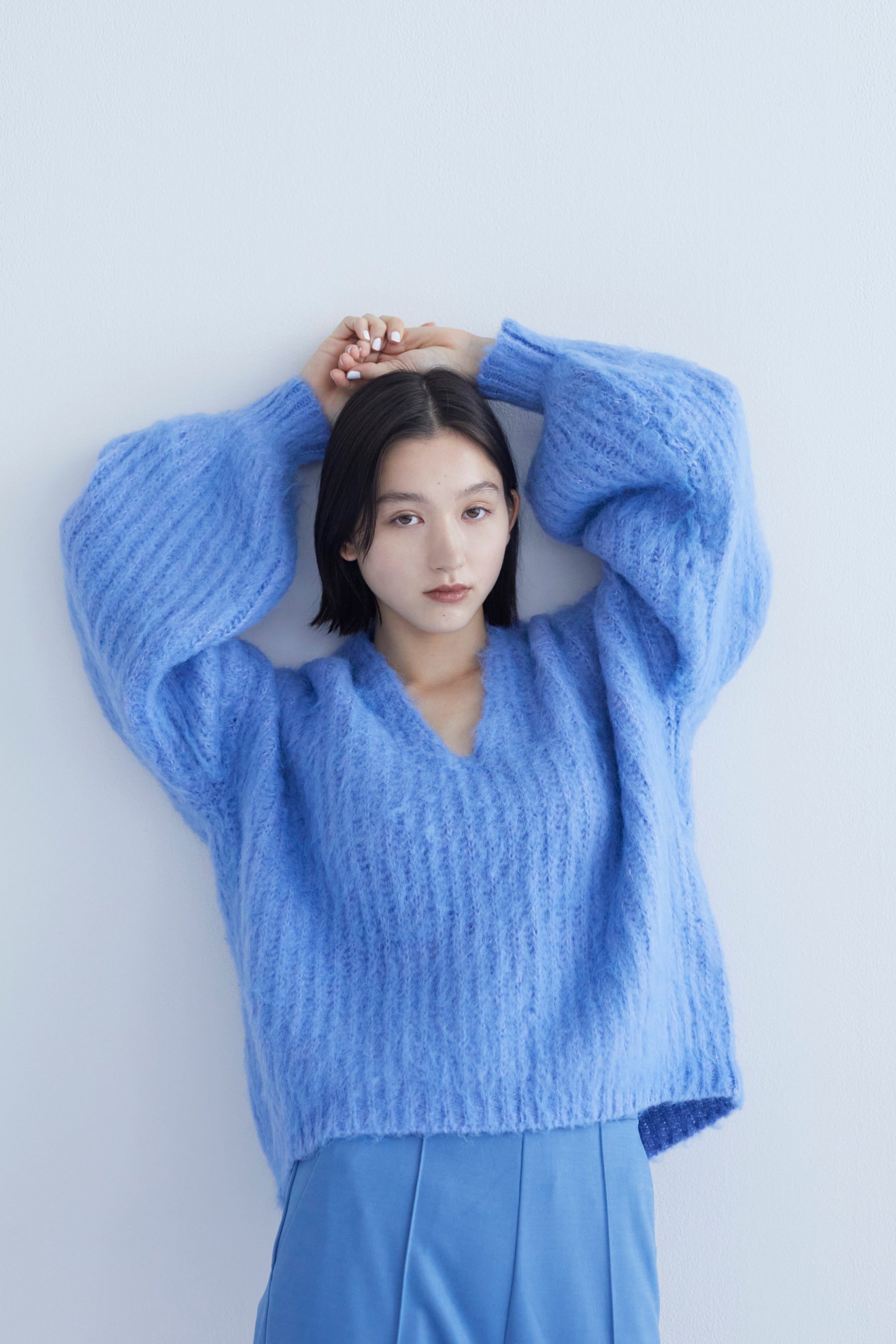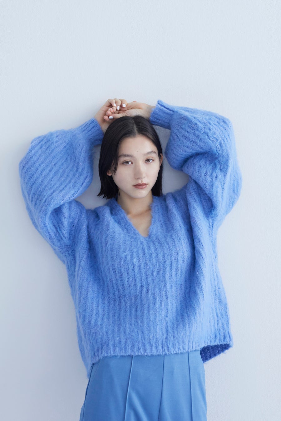 また、今季大注目のシャギーニットは、思わず触れたくなるようなふわふわ起毛で仕上げました。Vネックのスッキリした身頃にボリューム袖を組み合わせ、1枚で着映えが叶うアイテムです。そのほか、マットな質感で仕上げたベロアカットソーや異素材のパイピングがポイントのサイドラインパンツ、オリジナルのチェック柄を使用したワンピースなどをご用意いたしました。