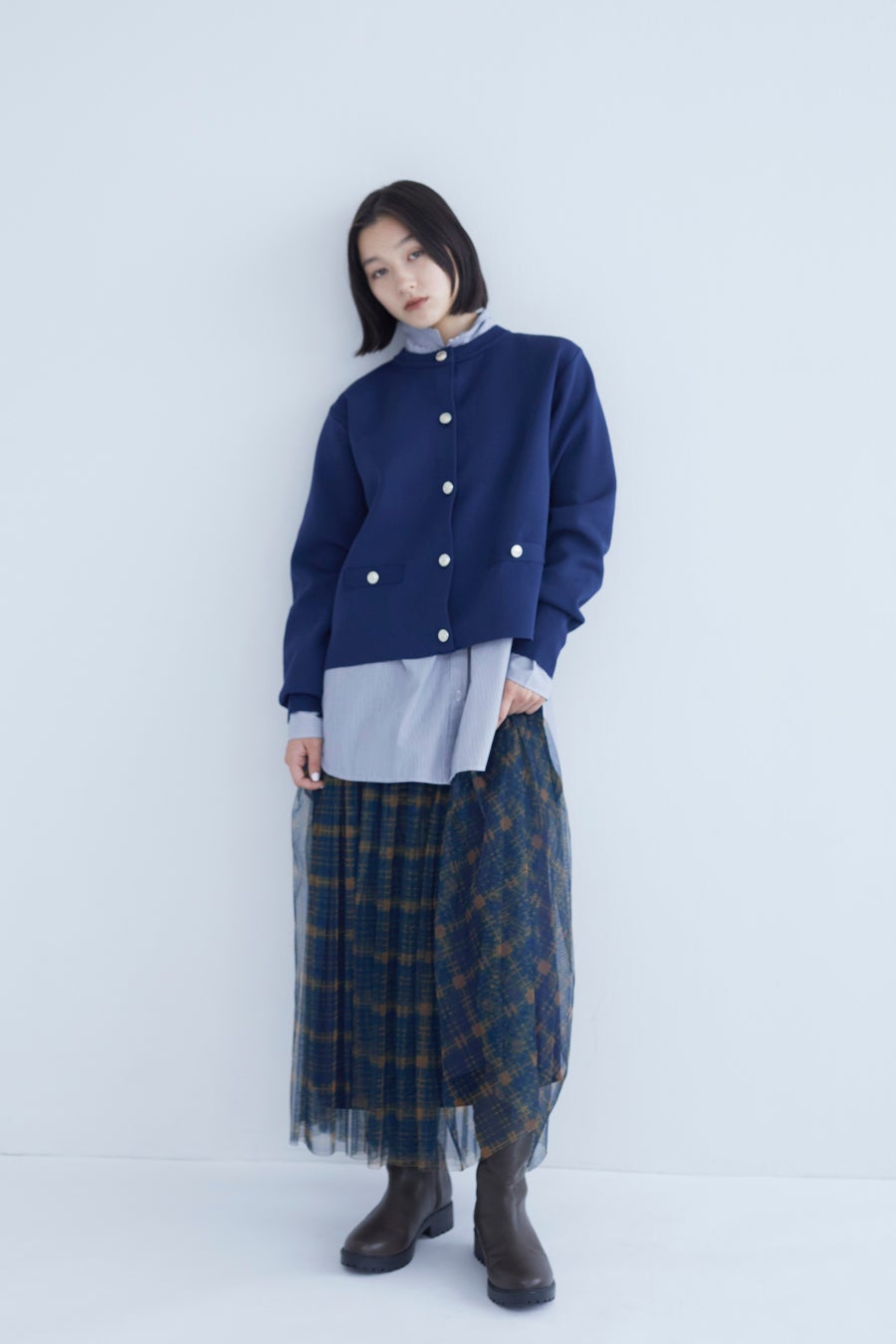 スタイリングの主役になるチェックチュールスカート。