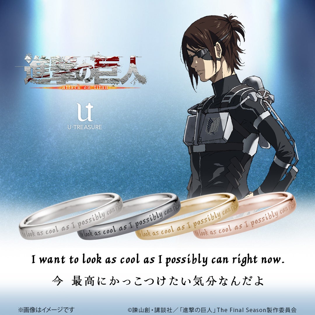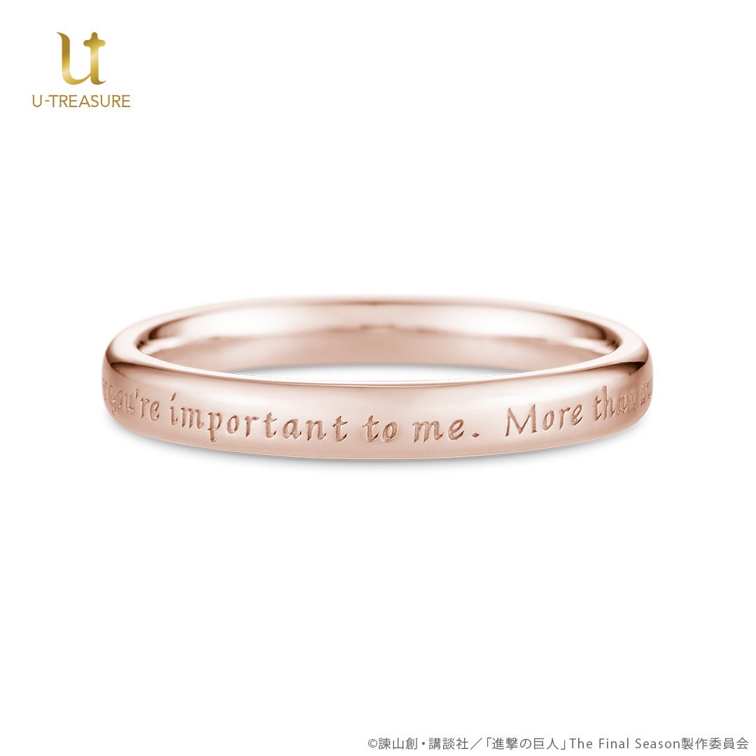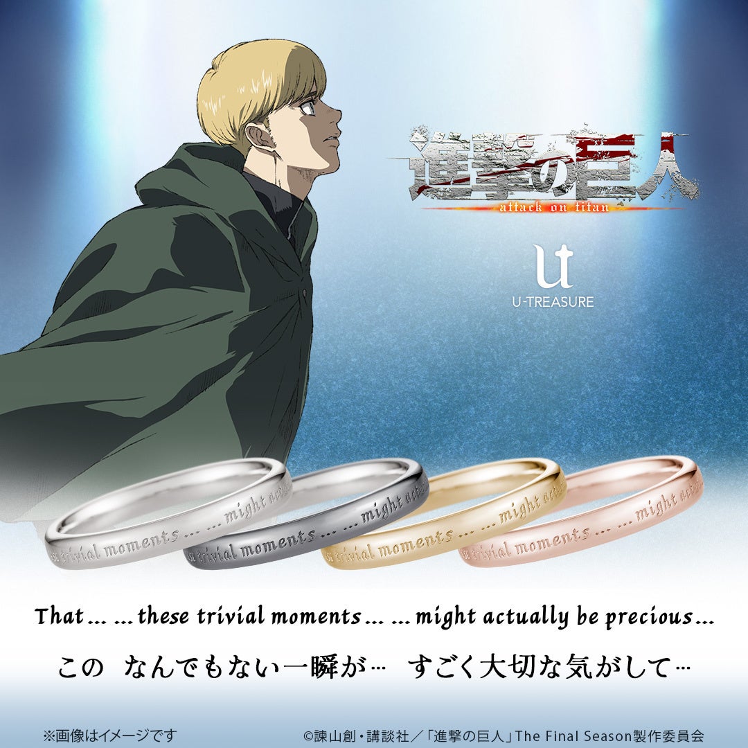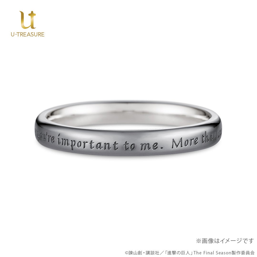 株式会社ユートレジャー(本社:東京都新宿区、代表取締役:伊藤 崇史)は、TVアニメ『進撃の巨人』とのコラボレーションアイテム「シンプルメッセージリング(指輪)」を2024年9月19日(木)~10月28日(月)の期間、ユートレジャーオンラインショップ、ユートレジャーコンセプトストア池袋にて予約受け付けを行います。