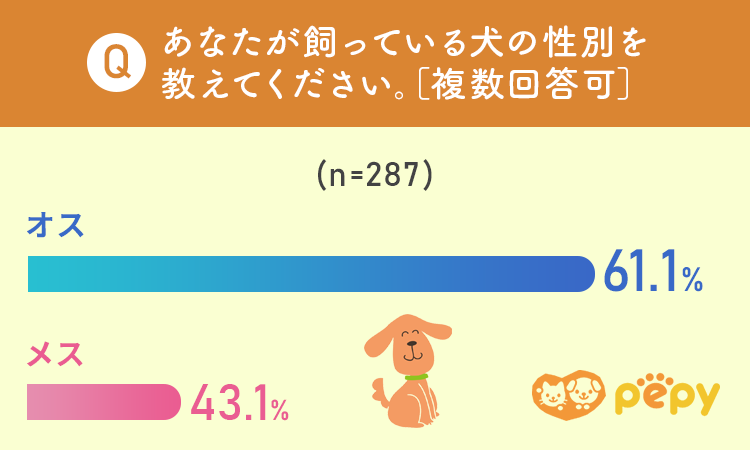 まず、事前調査で「犬を飼っている」と回答した287人の方に、犬の性別について聞きました。
