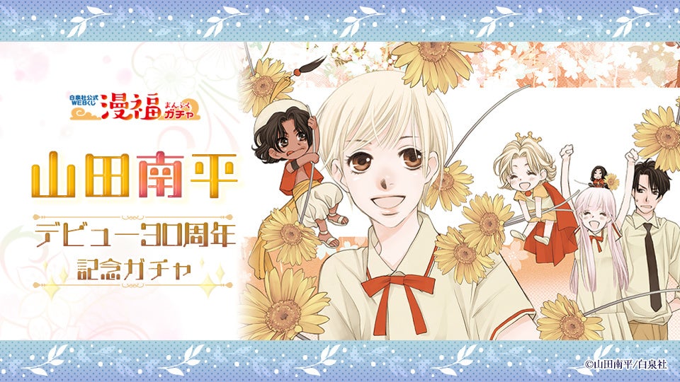 「山田南平デビュー30周年記念ガチャ」が、白泉社公式WEBくじ「漫福ガチャ」にて12/20(月)12:00~スタート! 期間限定、ハズレなし。ここでしか手に入らない、オリジナルグッズが当たる!