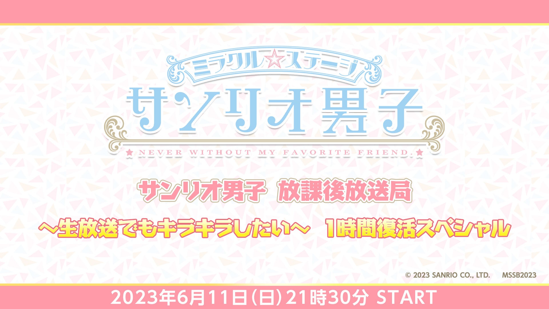 ミラクル☆ステージ『サンリオ男子』サンリオ男子 放課後放送局 ~生放送でもキラキラしたい~ 1時間復活スペシャルが、ニコニコ生放送にて6月11日(日)21時30分から放送決定。