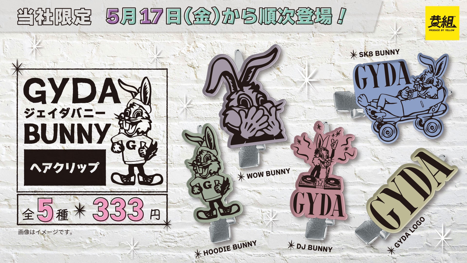 「HOODIE BUNNY」(グリーン)、「WOW BUNNY」(パープル)、「DJ BUNNY」(ピンク)、「SK8 BUNNY」(ブルー)、「GYDA LOGO」(アイボリー)の5色展開。