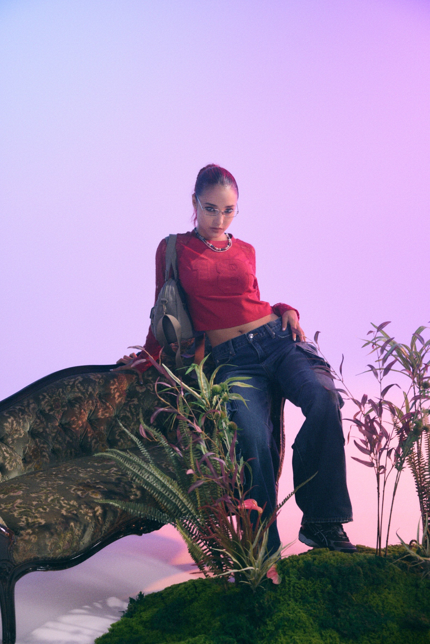 スラブ素材を使用したヴィンテージ感のあるTシャツ、軽やかな質感でフェミニンな要素を取り入れたスカート、トレンドのレース素材を使用したラグランTシャツ(REDカラーはatmos pink限定)、さらにatmos pink限定アイテムとしてポケットを数箇所に施したデニムカーゴパンツ、ショルダー、ハンドで使用可能なバッグの合計5型を展開いたします。