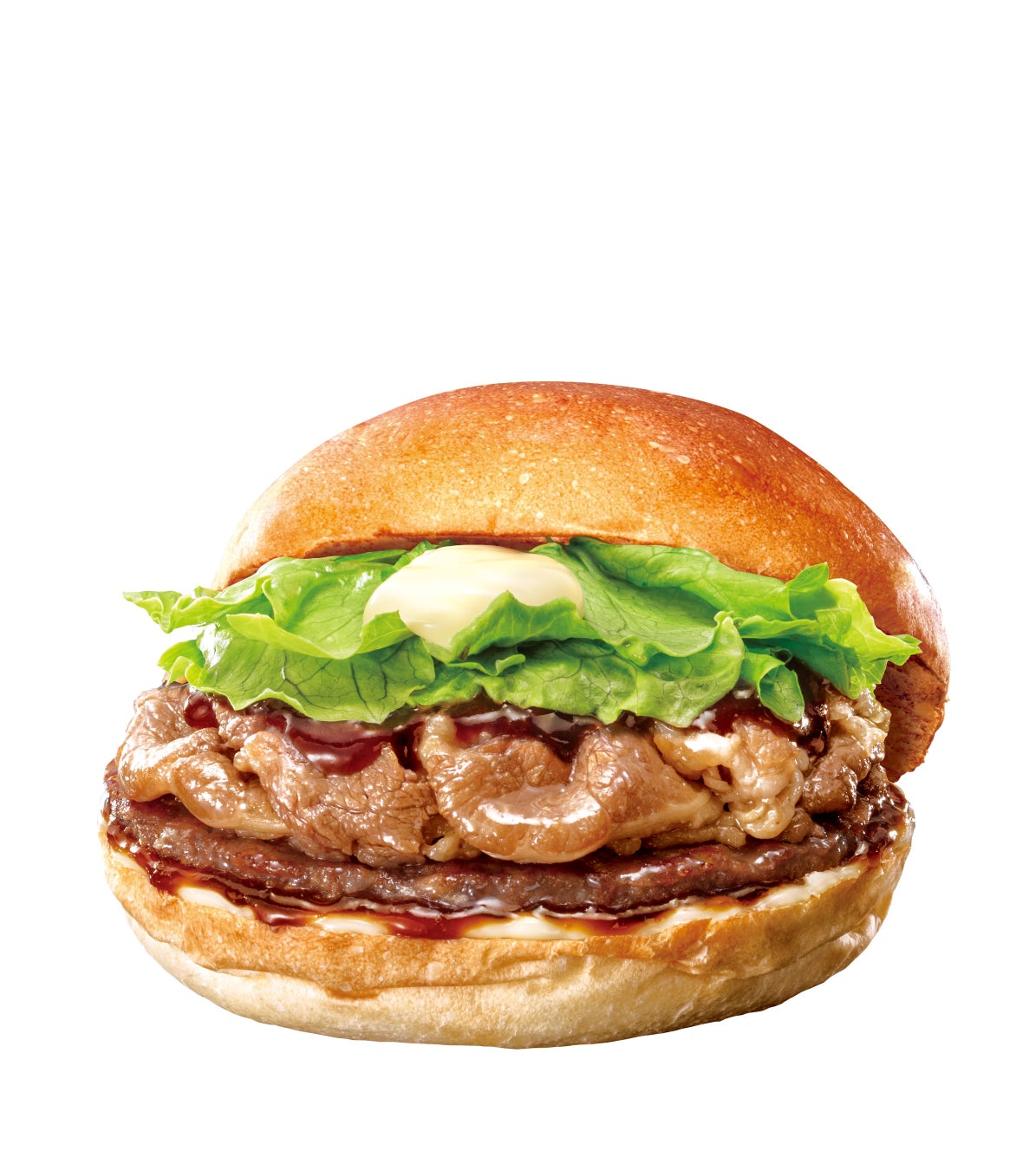 商品概要:ハンバーグパティを、ニンニクがきいた特製カルビソースで味付けした牛カルビ肉、レタスなどとともに、ふんわりもっちり食感のバンズで挟みました。ニンニクの風味と牛カルビ肉の相性が絶妙な商品です。