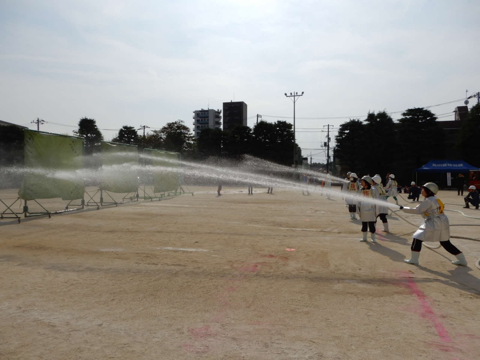 実施内容:起震車による地震体験訓練、煙体験訓練、応急手当訓練、スタンドパイプ訓練、放水訓練、防災キッチンカー等