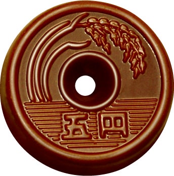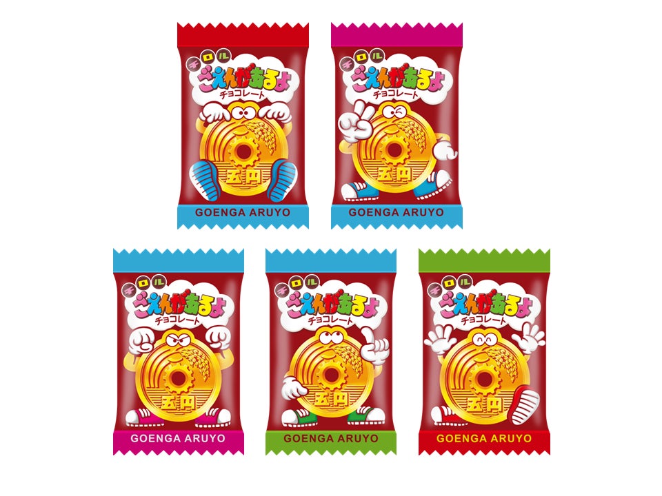 「ごえんがあるよ」は1984年に誕生した、5円玉の形をしたミルクチョコレート。パッケージのキャラクターは“ごえんくん”。発売40周年の今でも多くの人に愛される昔なつかしい商品です。