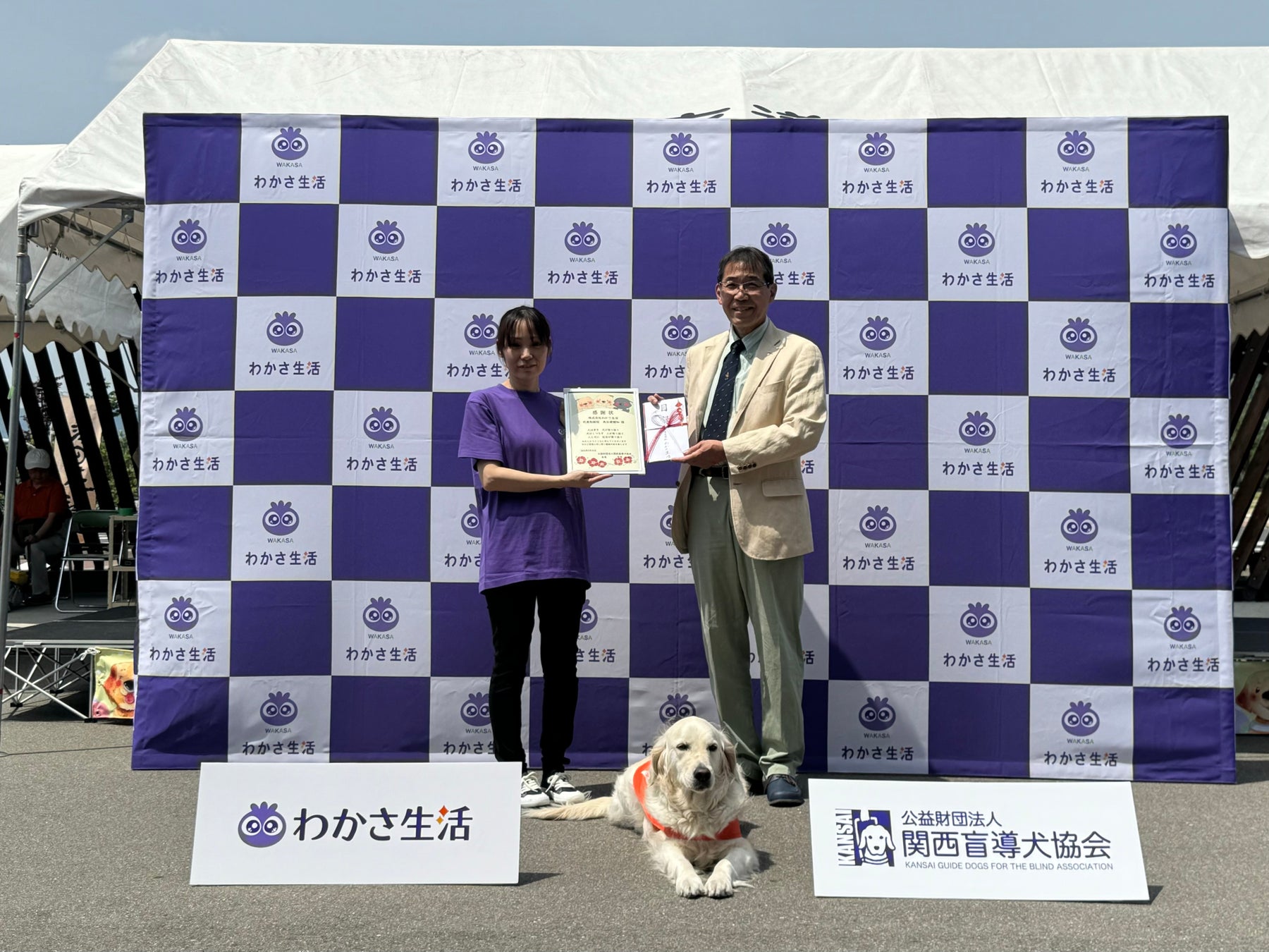 目の健康を第一に考える株式会社わかさ生活(本社:京都市下京区)は、2024年5月27日(日)に盲導犬啓蒙イベント「盲導犬Love'sフェスタ2024」にて、関西盲導犬協会への「盲導犬育成支援金の寄贈式」を実施いたしました。寄贈式では2024年4月18日(木)~4月24日(水)に実施した1いいね50円を寄付するわかさ生活X(Twitter)のキャンペーンについた8000いいねよる、400,000円を関西盲導犬協会へ眼科検診費用として寄付させていただきました。