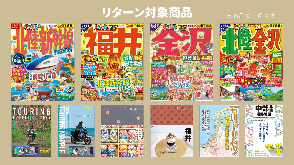 ◆ご支援のリターンとして対象地域の旅行ガイドブック『まっぷる 北陸新幹線next!』や『ことりっぷ金沢』など書籍を送付。