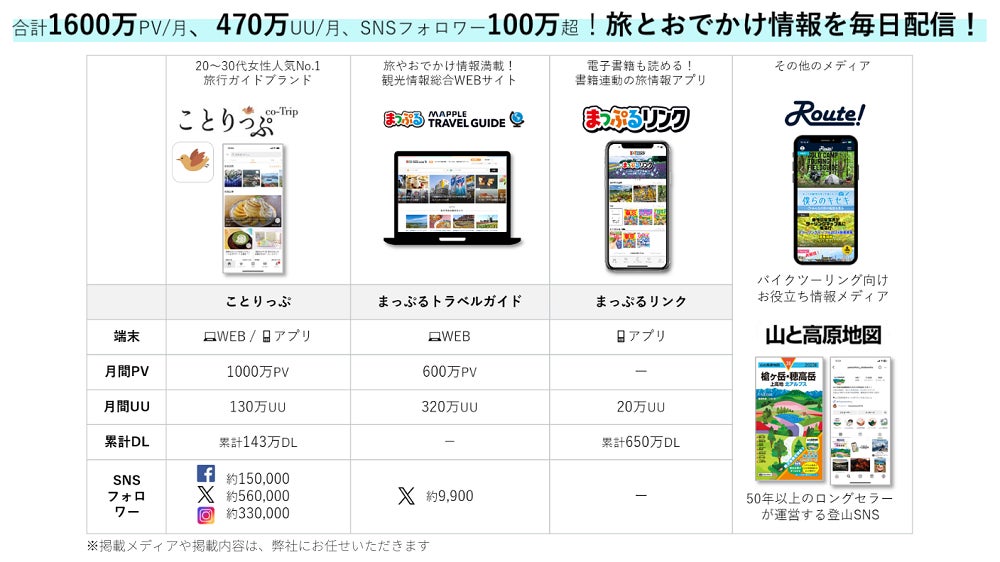 2.昭文社が運営するWEBメディア「まっぷるトラベルガイド(https://www.mapple.net/)」や「ことりっぷWEB(https://co-trip.jp/)」などでもプロジェクトの告知を行うことで、「旅」を通して「地域」に関心の高いユーザーへ、効果的にプロジェクトを訴求できます。