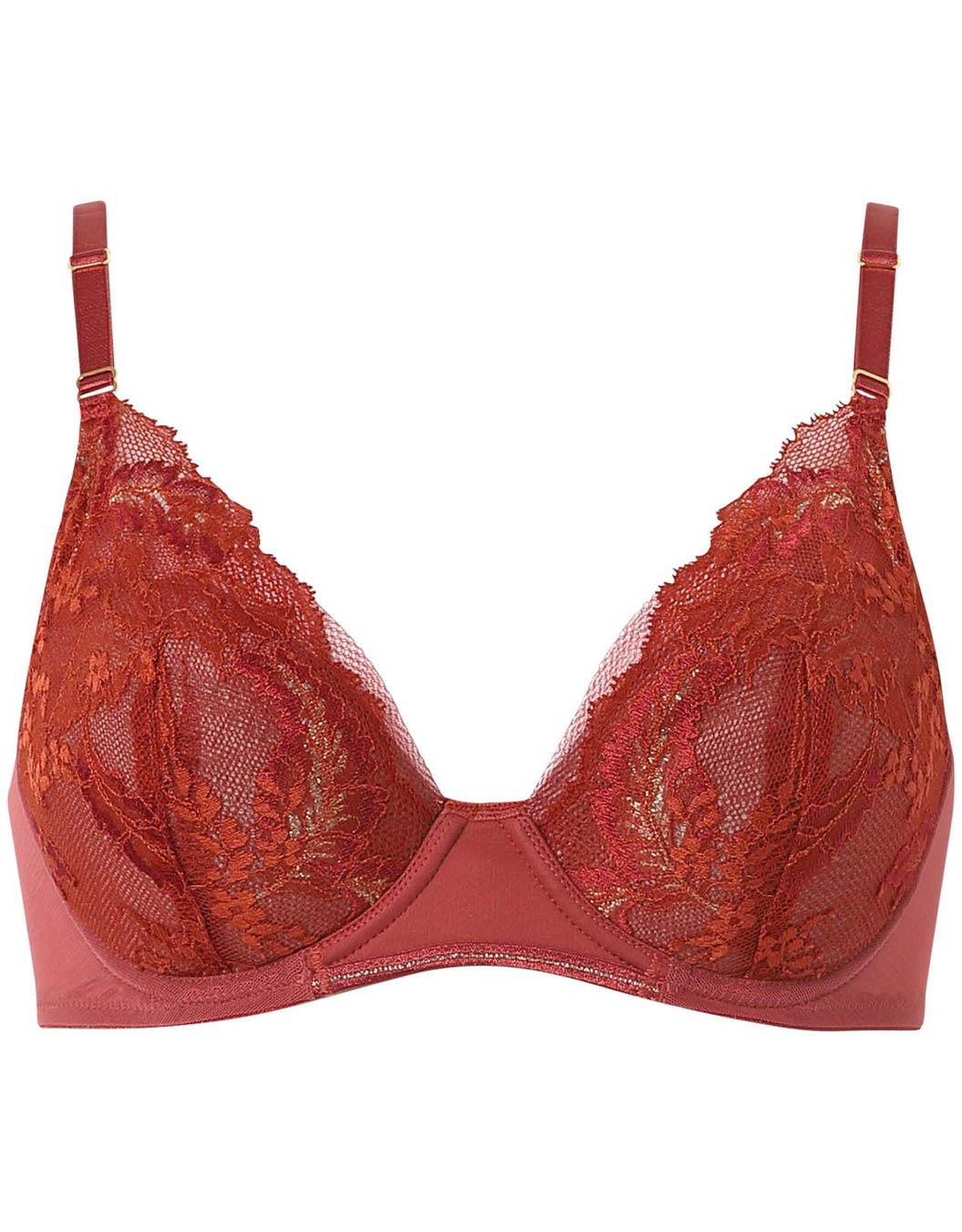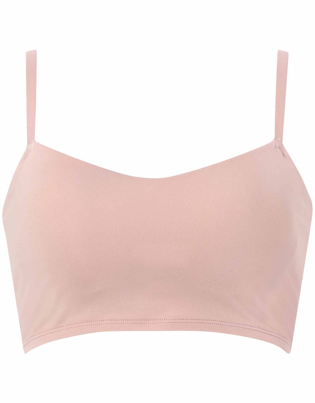 アンダーゴム不使用でラクなつけごこちなのに、左右一体型のカップがきれいなバストシルエットにととのえます。